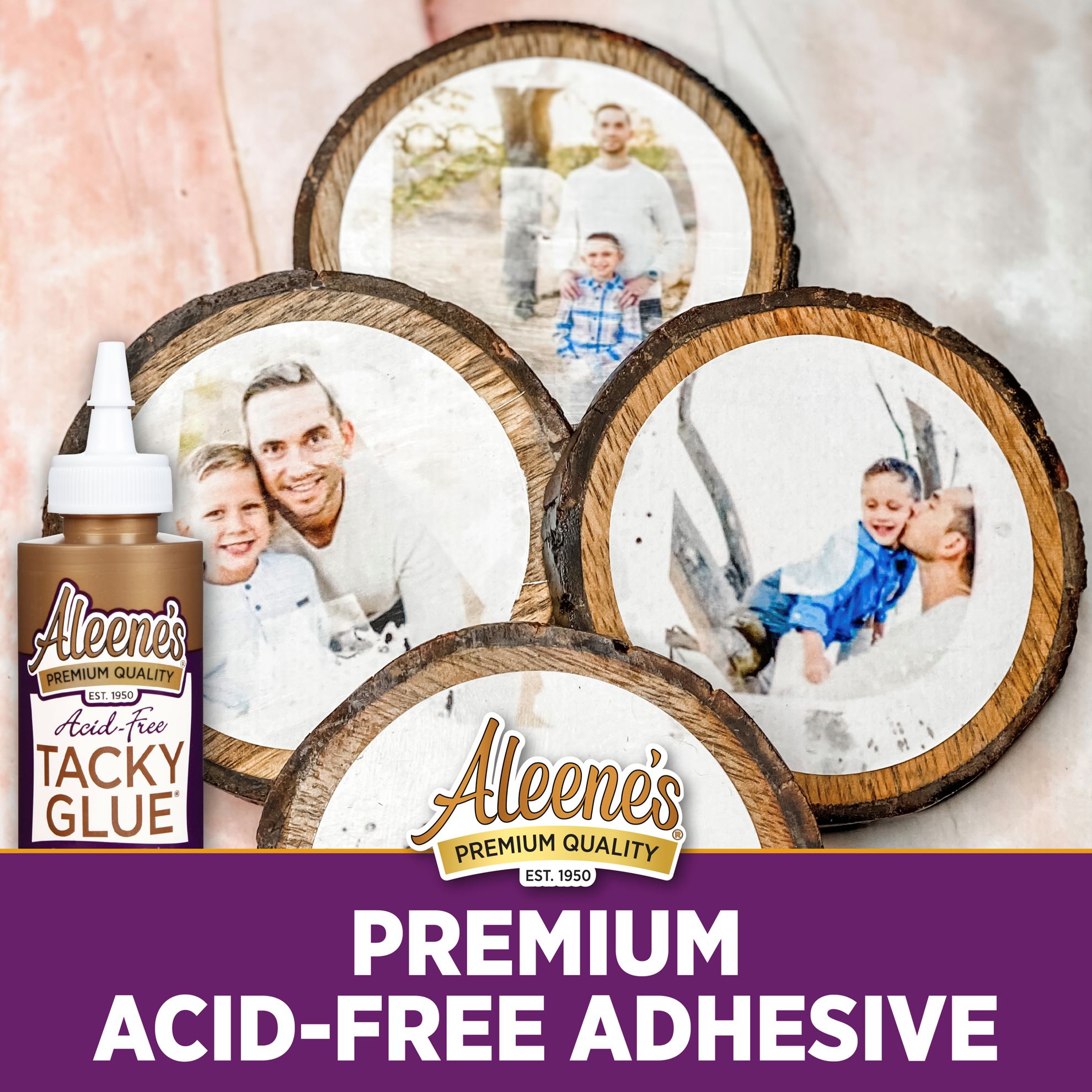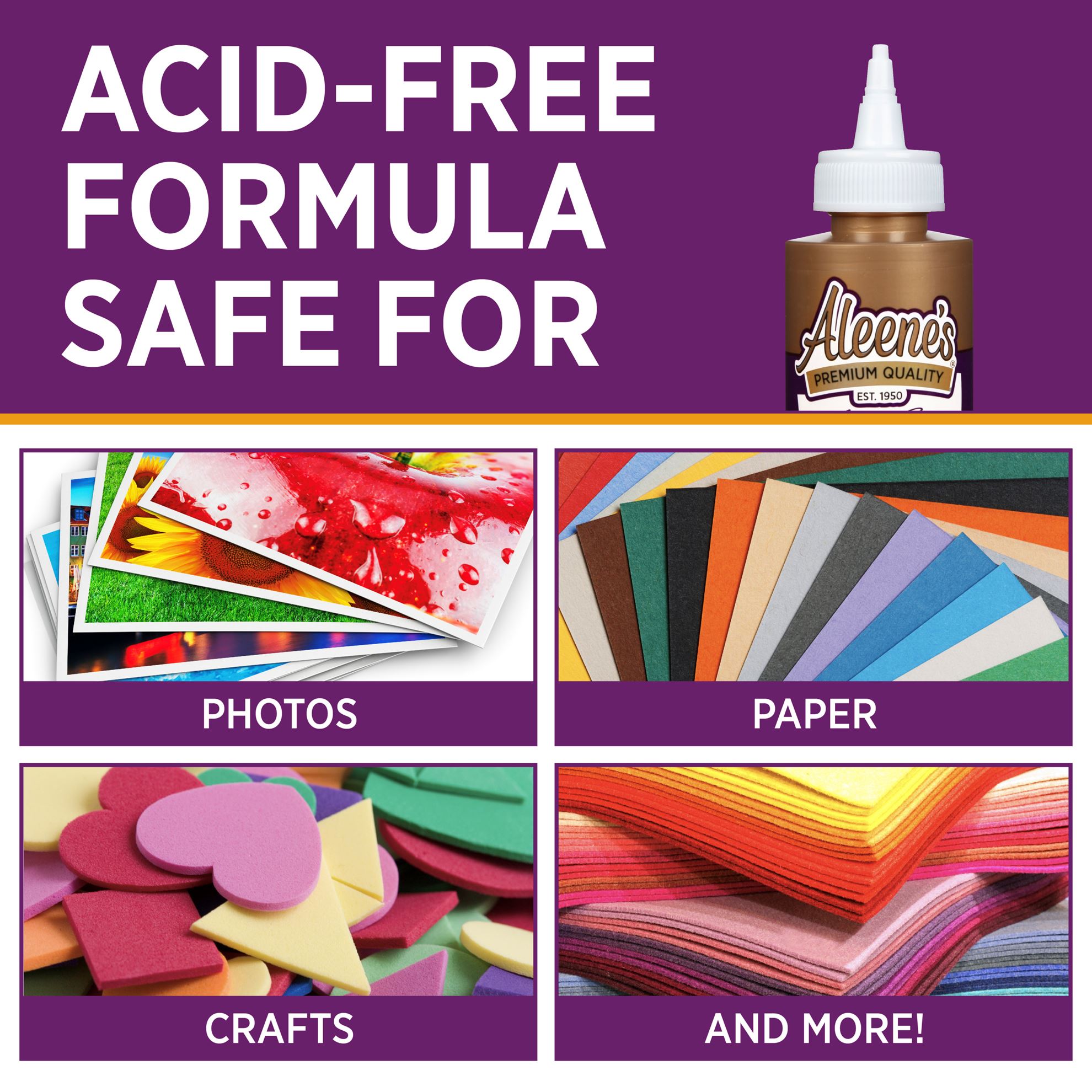 Aleene’s Acid-Free Tacky Glue has all of the same great qualities you love about the original glue – like its super strong hold and clear-drying formula – but safe and non-yellowing for paper, photo and scrapbooking needs.