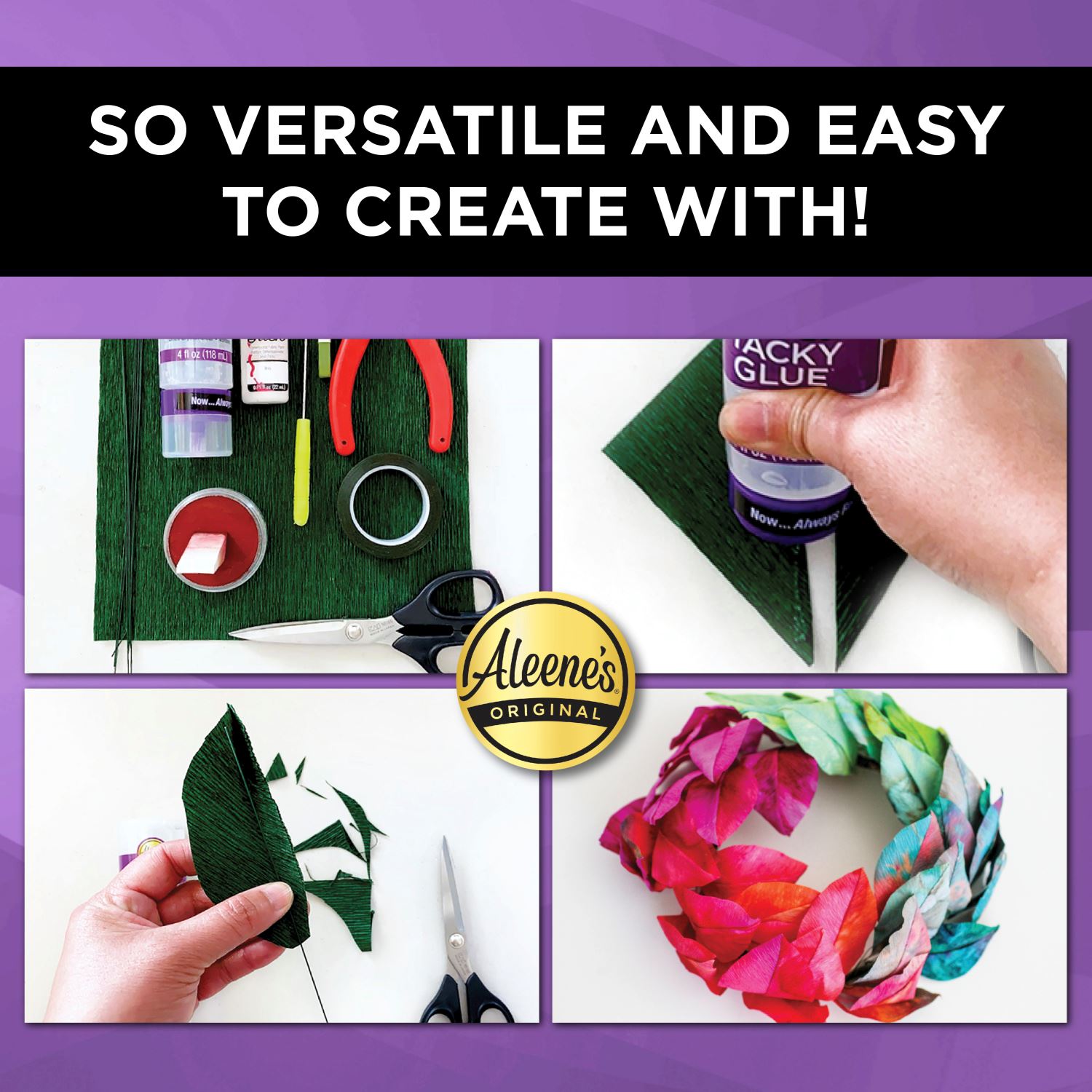 Aleene’s Always Ready Original Tacky Glue features a convenient, no-cut tip for reliable application that works on just about every surface. Its thick, nontoxic tacky formula grabs items on contact and dries clear, permanent, and 50% faster than our original Tacky Glue! Great for crafts, hobbies, DIYs and household repairs. Features 1 (4 fl. oz.) bottle of Aleene’s Always Ready Quick Dry Tacky Glue.