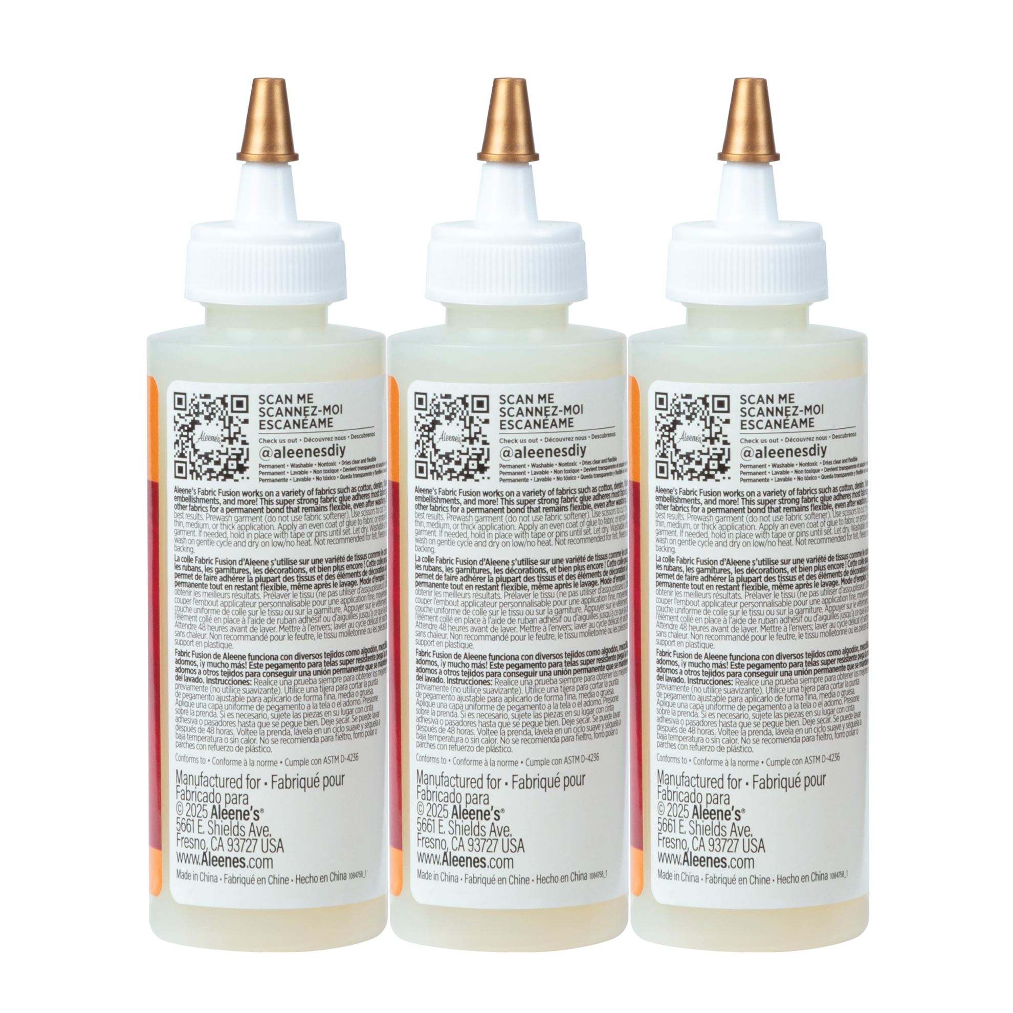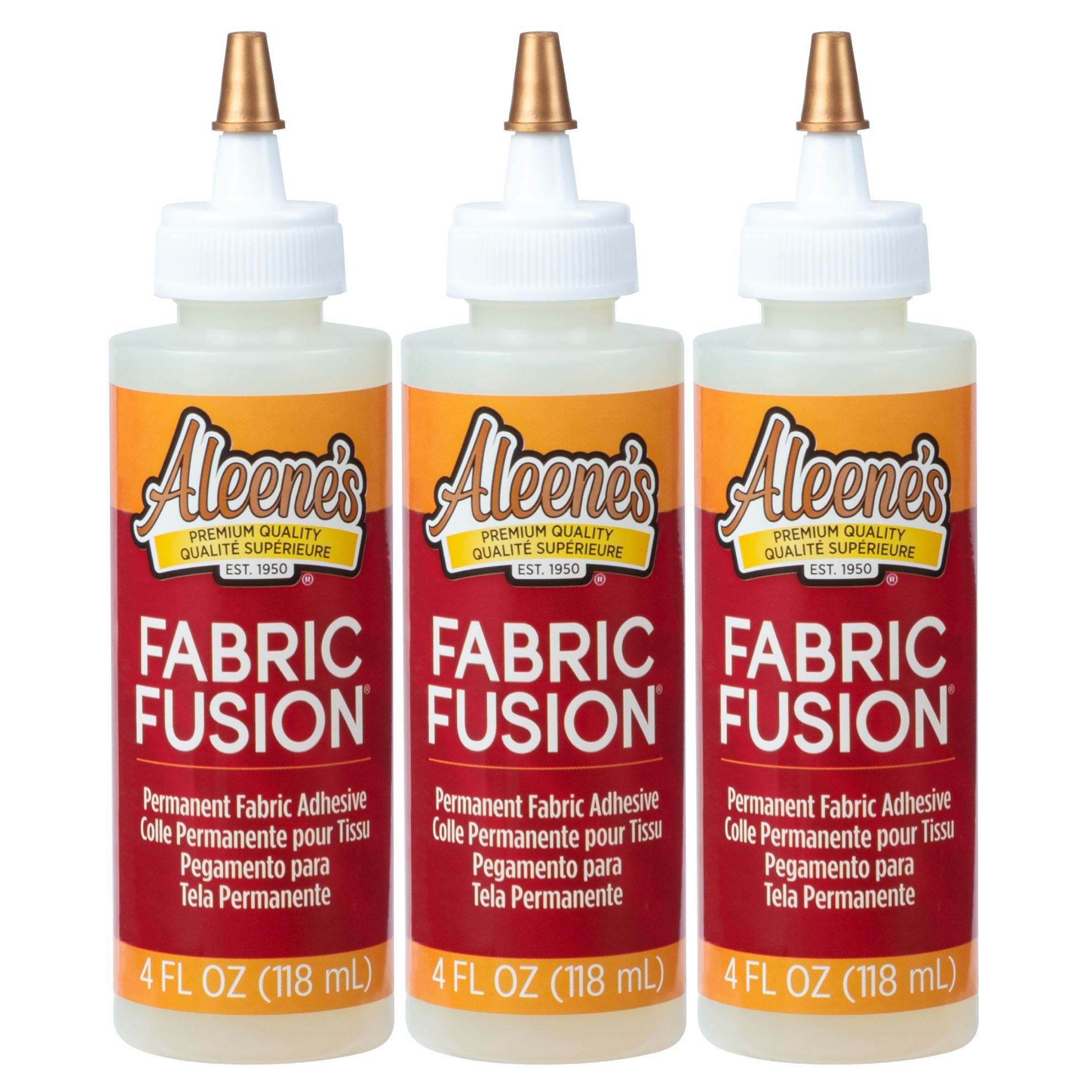 Whether you know how to sew and don’t have time, or have never picked up a needle and thread in your life, Fabric Fusion is an easy alternative! This super strong fabric glue adheres all kinds of fabrics and embellishments to other fabrics for a permanent bond that remains flexible, even after washing. Features 3 (4 fl. oz.) bottles of Aleene’s Fabric Fusion.
