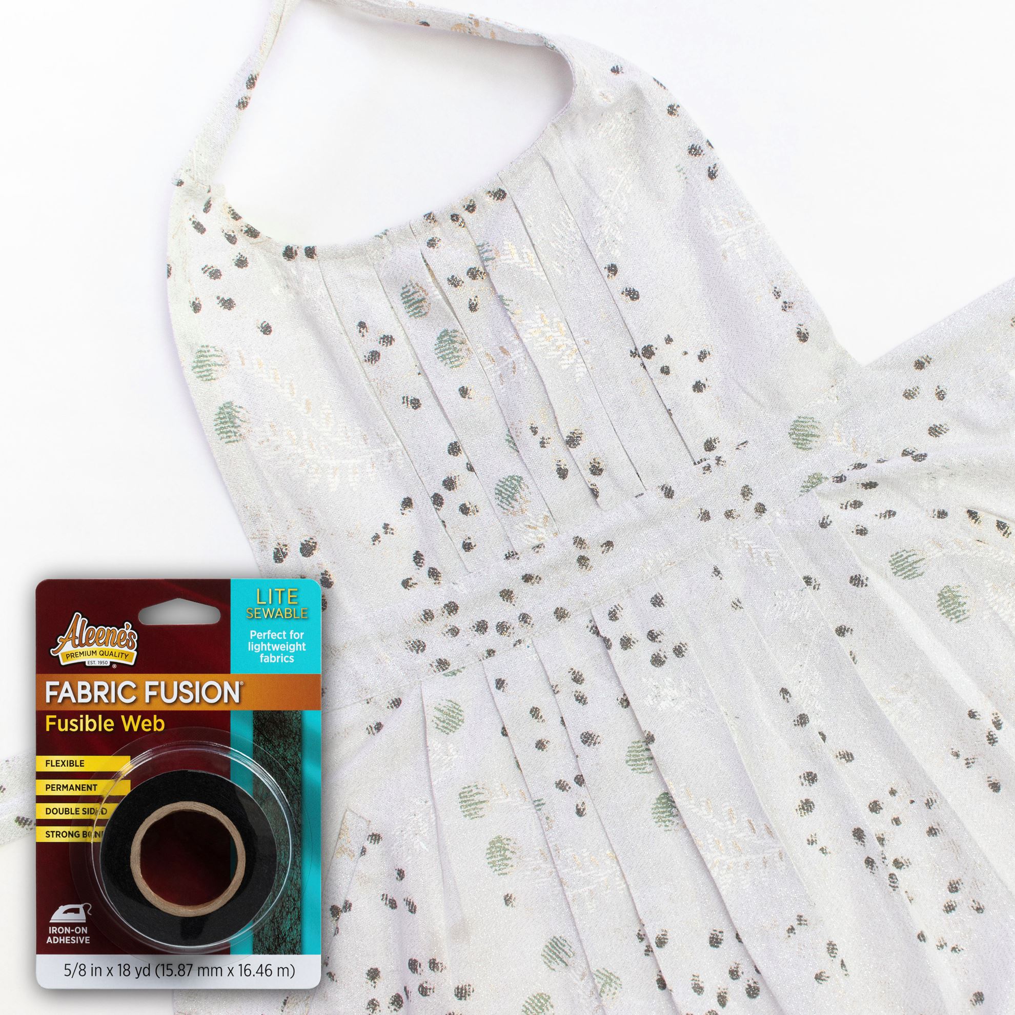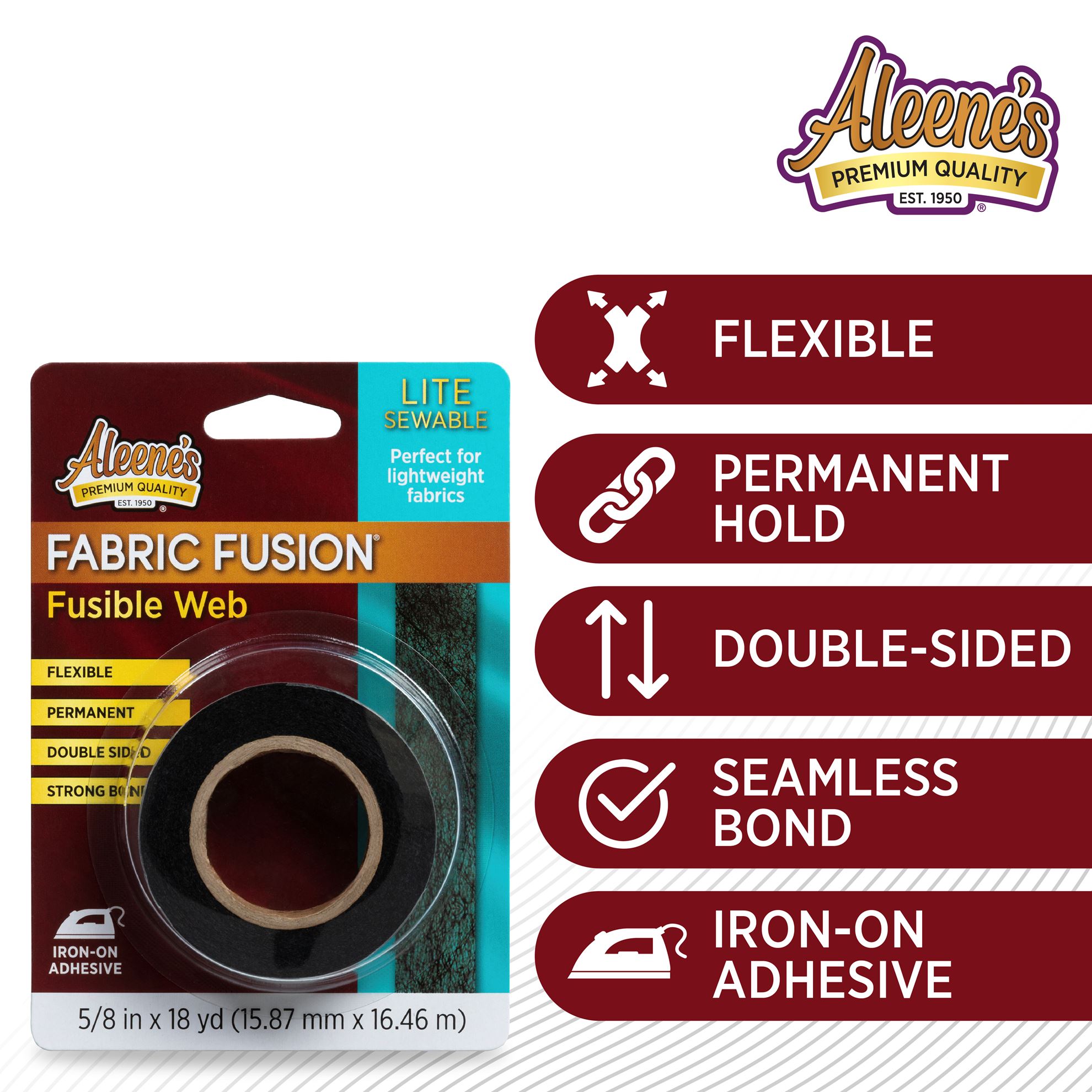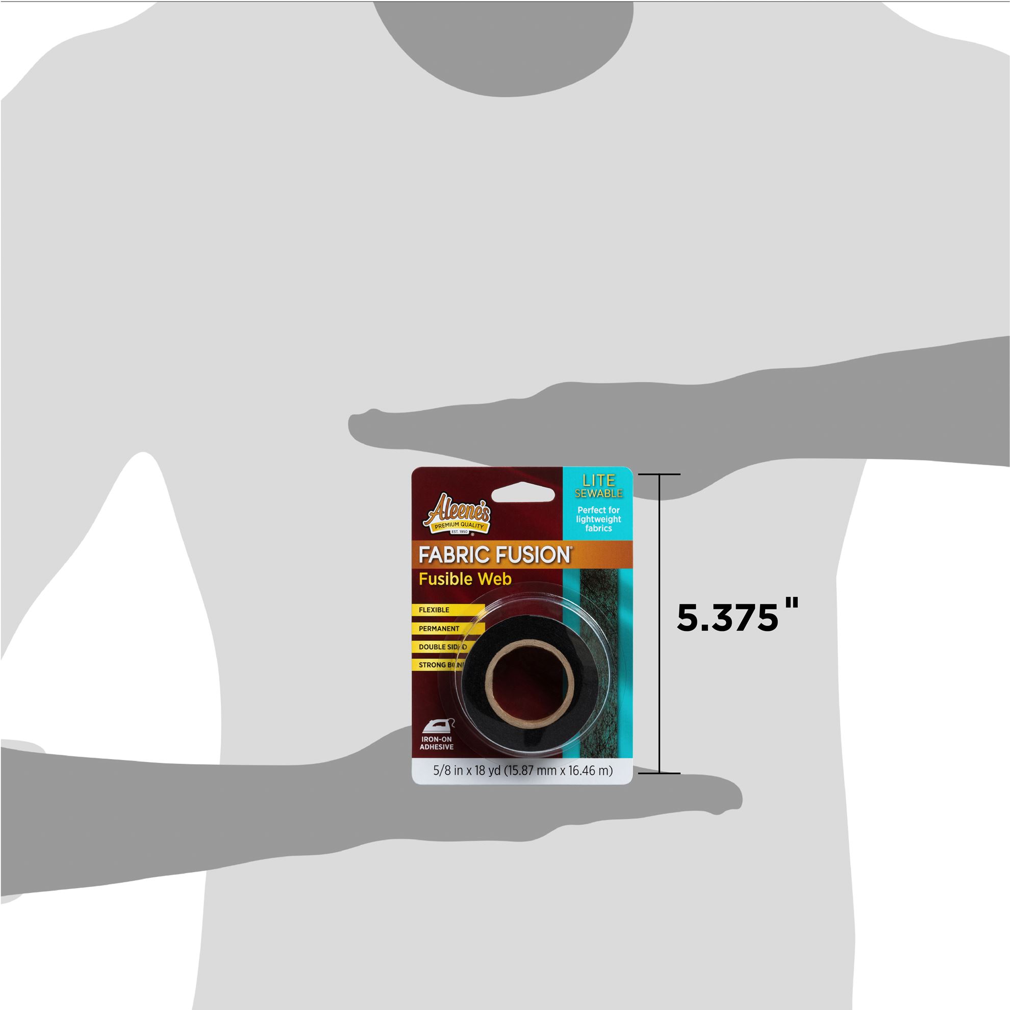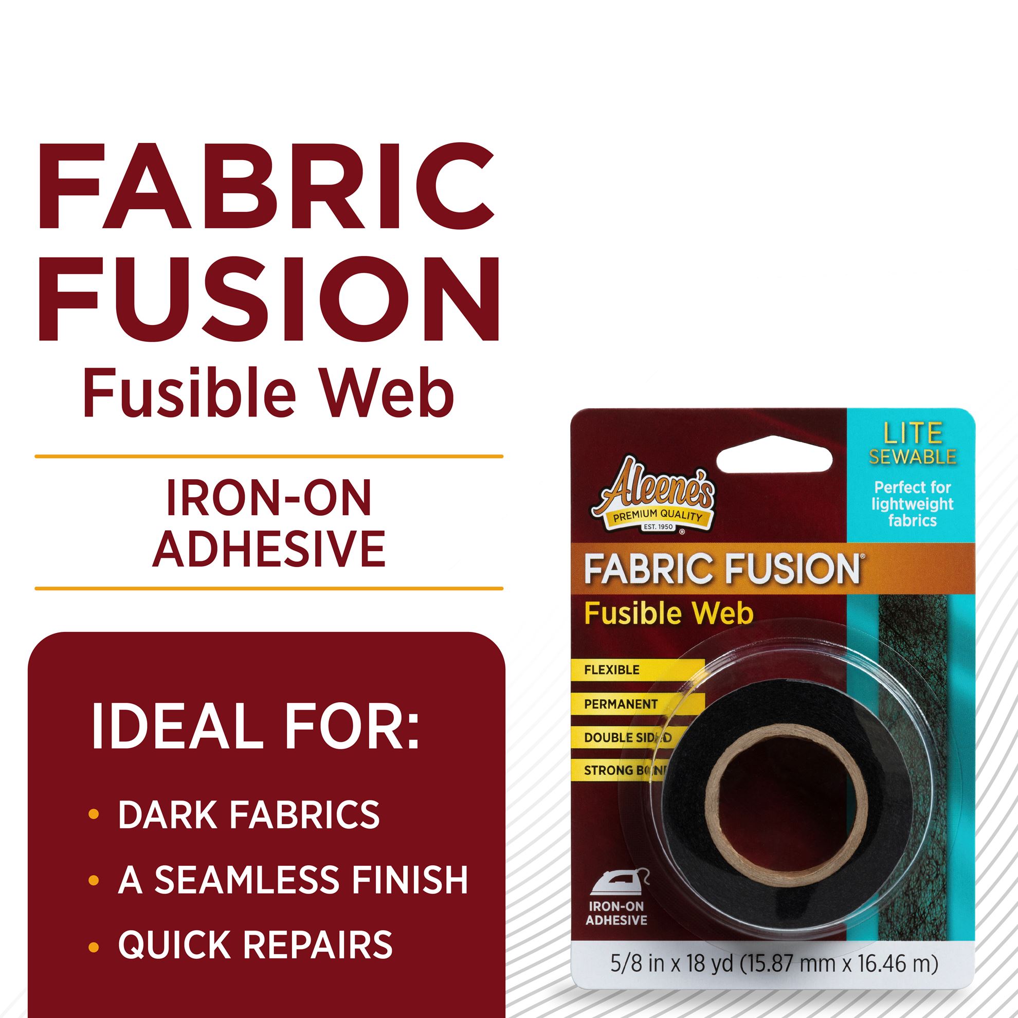 - Includes (1) 5/8 in x 18 yd roll of Aleene’s Fabric Fusion Lite Fusible Web (Black)