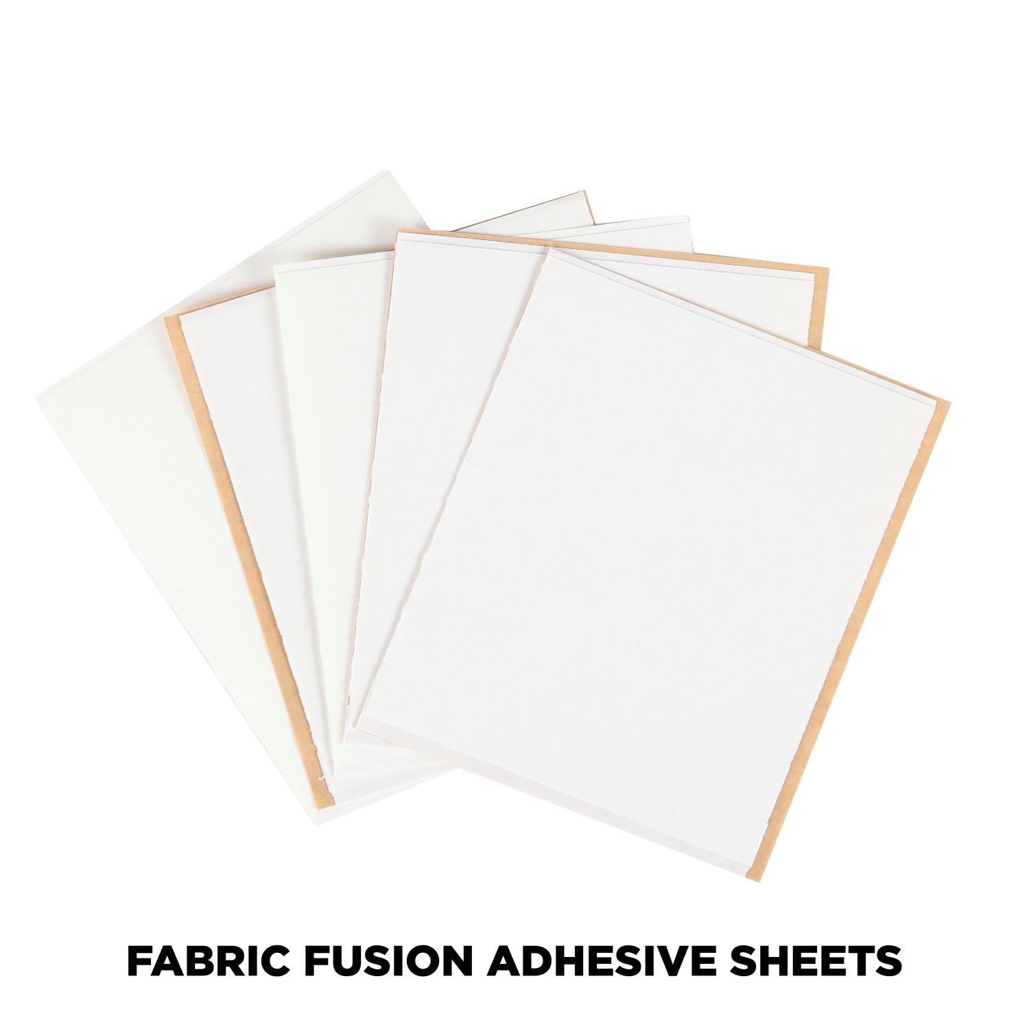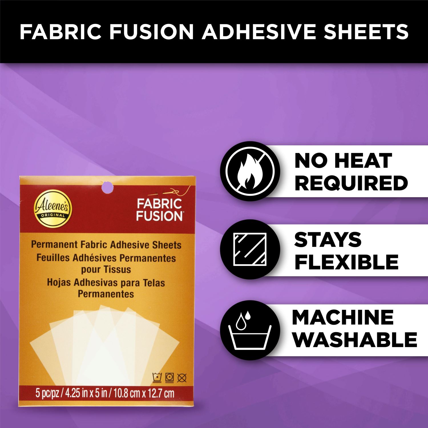 Whether you know how to sew and don’t have time, or have never picked up a needle and thread in your life, Fabric Fusion Peel & Stick Sheets are an easy alternative! These double-sided adhesive sheets make it super easy to instantly and permanently layer fabrics and adhere patches and appliqués to fabrics without heat setting— just peel and stick! Features 5 (4.25 in x 5 in) Permanent Fabric Adhesive Sheets.