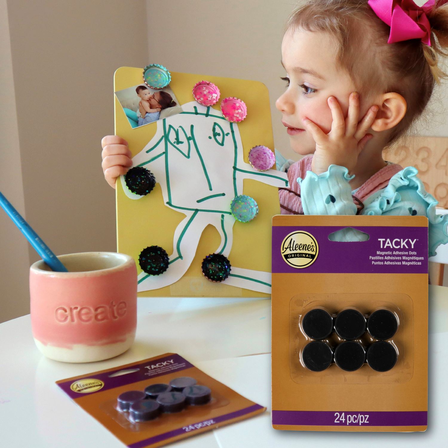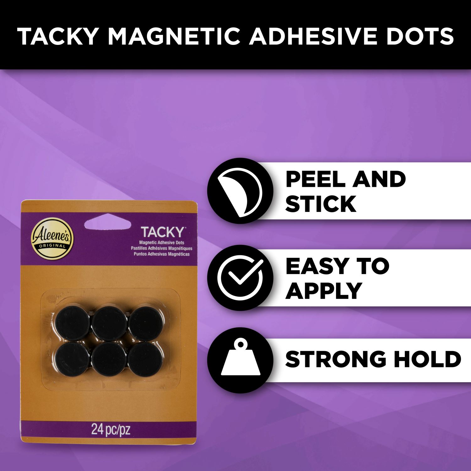 Create custom magnets in minutes with Aleene’s Tacky Magnetic Adhesive Dots! Use with your favorite photos, notes, artwork, and more for an instant custom craft— just peel the backing and stick on! Perfect for smaller projects. Includes 24 magnetic adhesive dots.