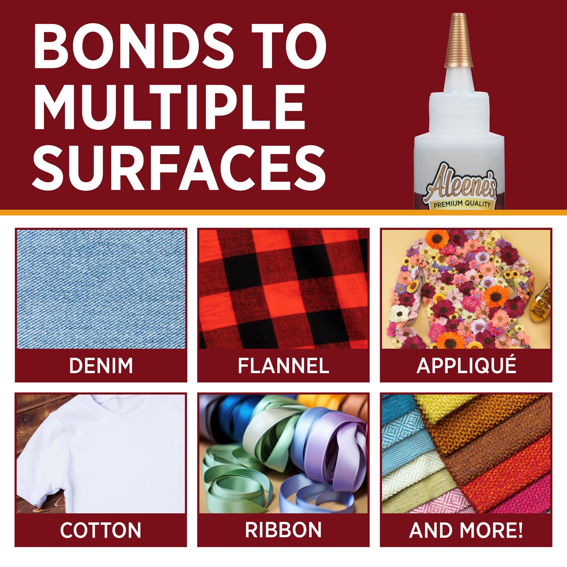 - Permanent bond between fabrics and other embellishments