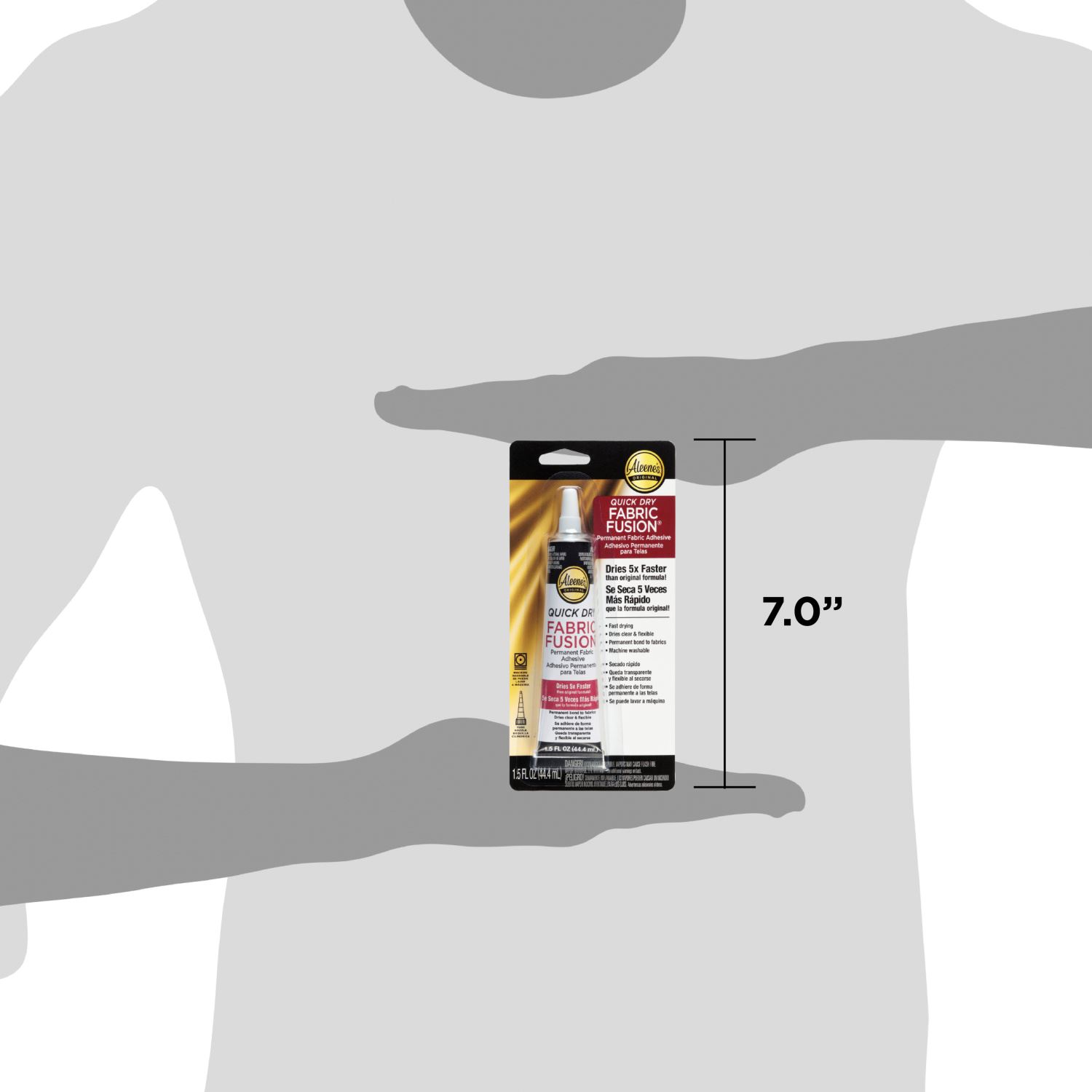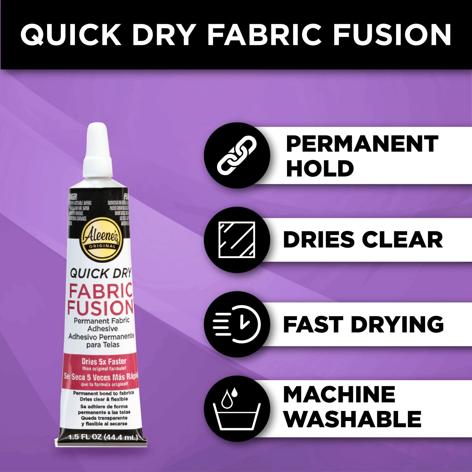 Whether you know how to sew and don’t have time, or have never picked up a needle and thread in your life, Fabric Fusion is an easy alternative! This super strong fabric glue dries up to 5 times faster than our original formula; it adheres all kinds of fabrics and embellishments to other fabrics for a permanent bond that remains flexible, even after washing. Features 1 (1.5 fl. oz.) tube of Aleene’s Quick Dry Fabric Fusion.