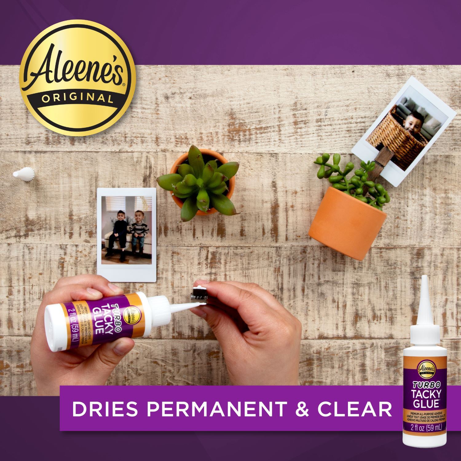 Aleene’s Turbo Tacky Glue dries faster with a stronger hold than our Original Tacky Glue! One of the most trusted all-purpose adhesives you can find, Turbo Tacky Glue works on just about every surface. Its thick, nontoxic tacky formula dries clear and uses more resin for a super strong and permanent bond. Great for crafts, hobbies, DIYs and household repairs. Features 1 (4 fl. oz.) bottle of Aleene’s Turbo Tacky Glue. Needle nose applicator offers precision application.