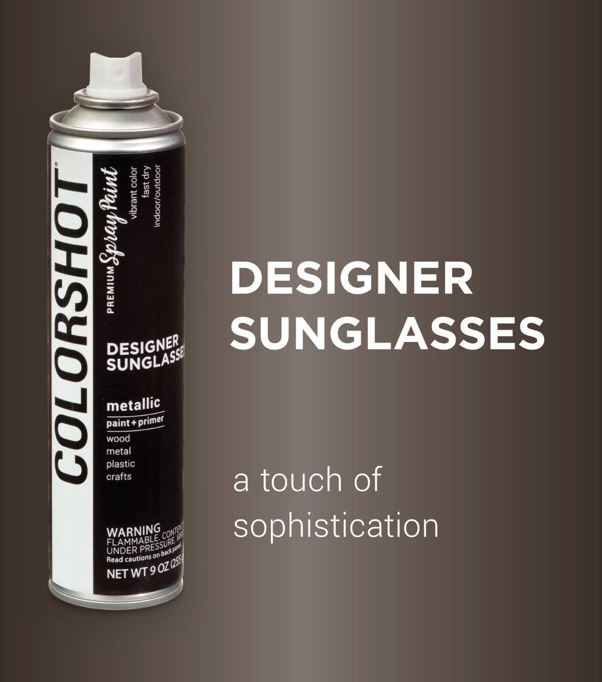 COLORSHOT Premium Spray Paint is designed to be everything regular spray paint isn’t. From the must-have selection of head-turning colors to the hardworking acrylic paint formula and sleek can design, no other spray paint allows you to play with color the way COLORSHOT does. Even better, the innovative COLORSHOT formula has a propellant made from sugar cane instead of petroleum, so you can feel good about the sweet decision to turn everything in your house a shade of Designer Sunglasses. All the color you need for a brand-new look, powered by COLORSHOT.