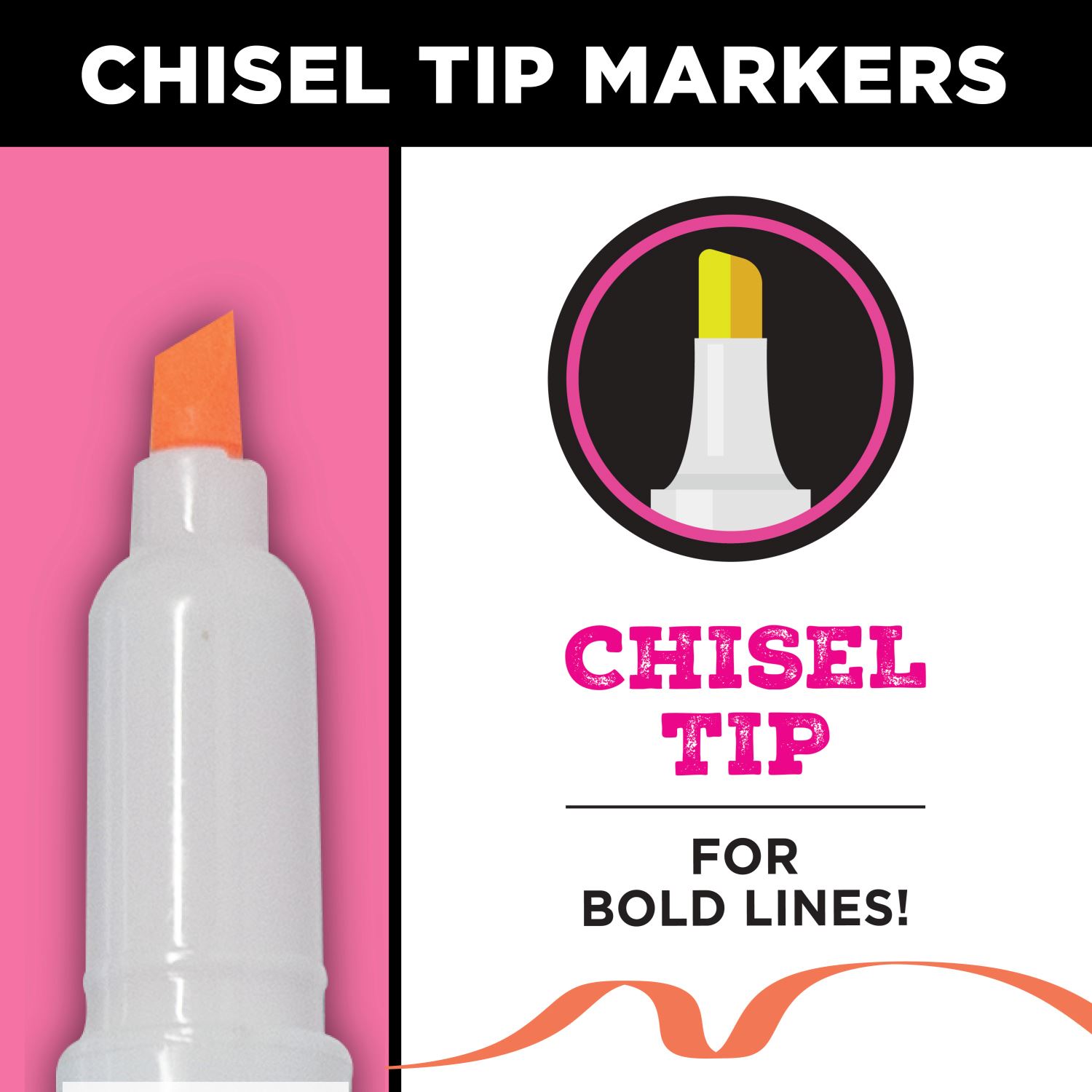 Tulip Graffiti Fabric Markers kick your creativity into high gear with poppin’ color! This Neon 6 Pack includes chisel-tip markers (Neon Pink, Neon Orange, Neon Green, Light Blue, Neon Purple and Black) that are perfect for creating bold word art on fabrics. Tulip Fabric Markers dry permanently on light-colored fabrics, so let your imagination take over on clothing, shoes, bags & backpacks, and other DIY craft surfaces! The bright and bold premium-color inks keep your creativity from fading, even after multiple machine washes. No heat-setting required.
