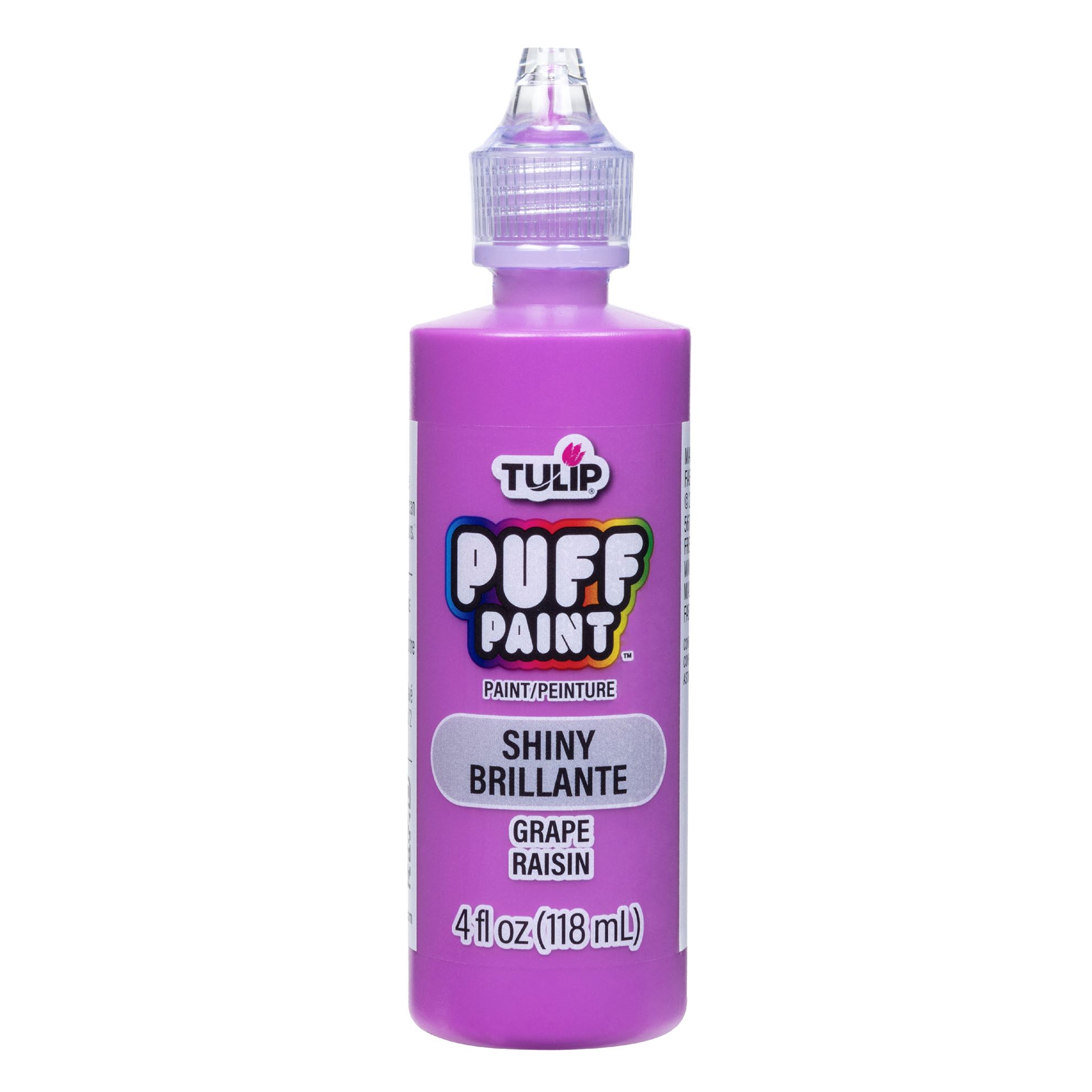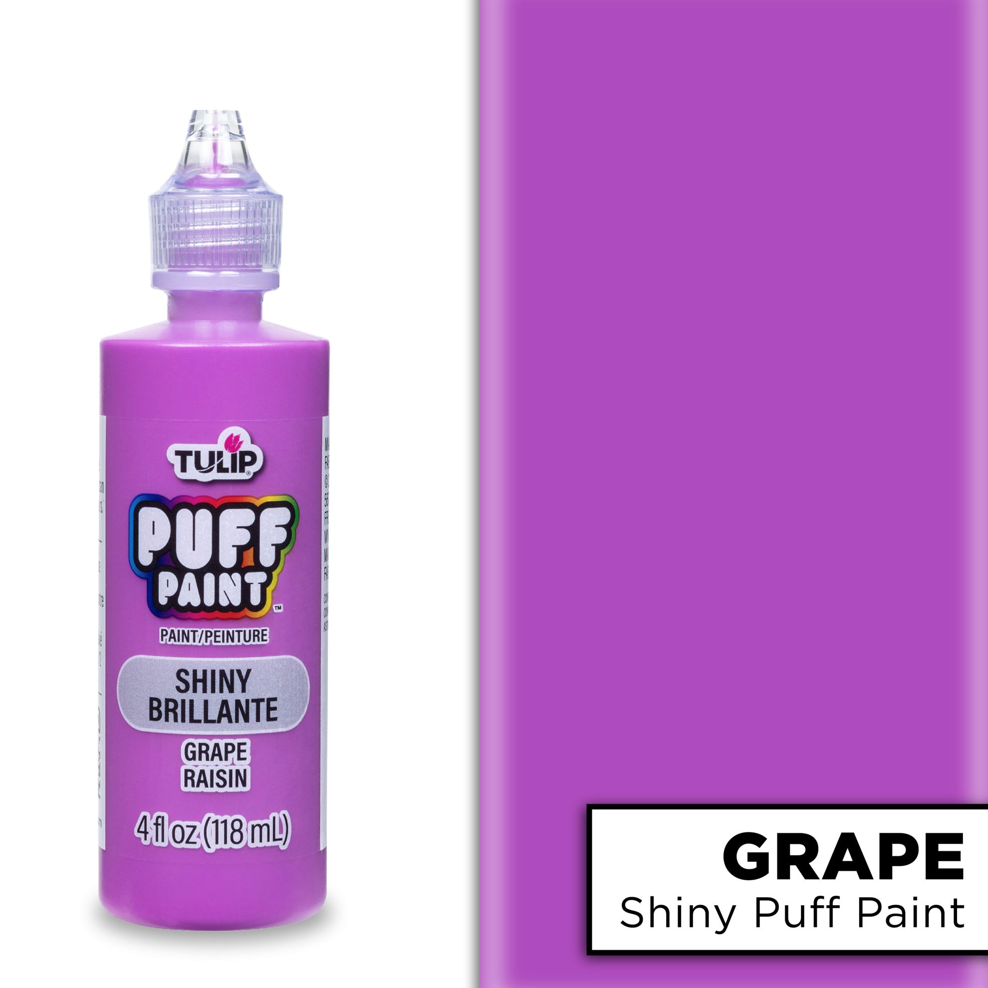 Make your craft and fashion projects stand out with Puff Paint! Tulip Puff Paints dry permanent, flexible and machine washable with shiny, dimensional texture that stands out on every project. These nontoxic paints are used by crafters of all ages and skill levels on everything from educational crafts to statement T-shirts, canvas art, accessories, gift giving, seasonal décor and so much more!Includes 1 (4 fl. oz) bottle of Shiny Grape Puff Paint.