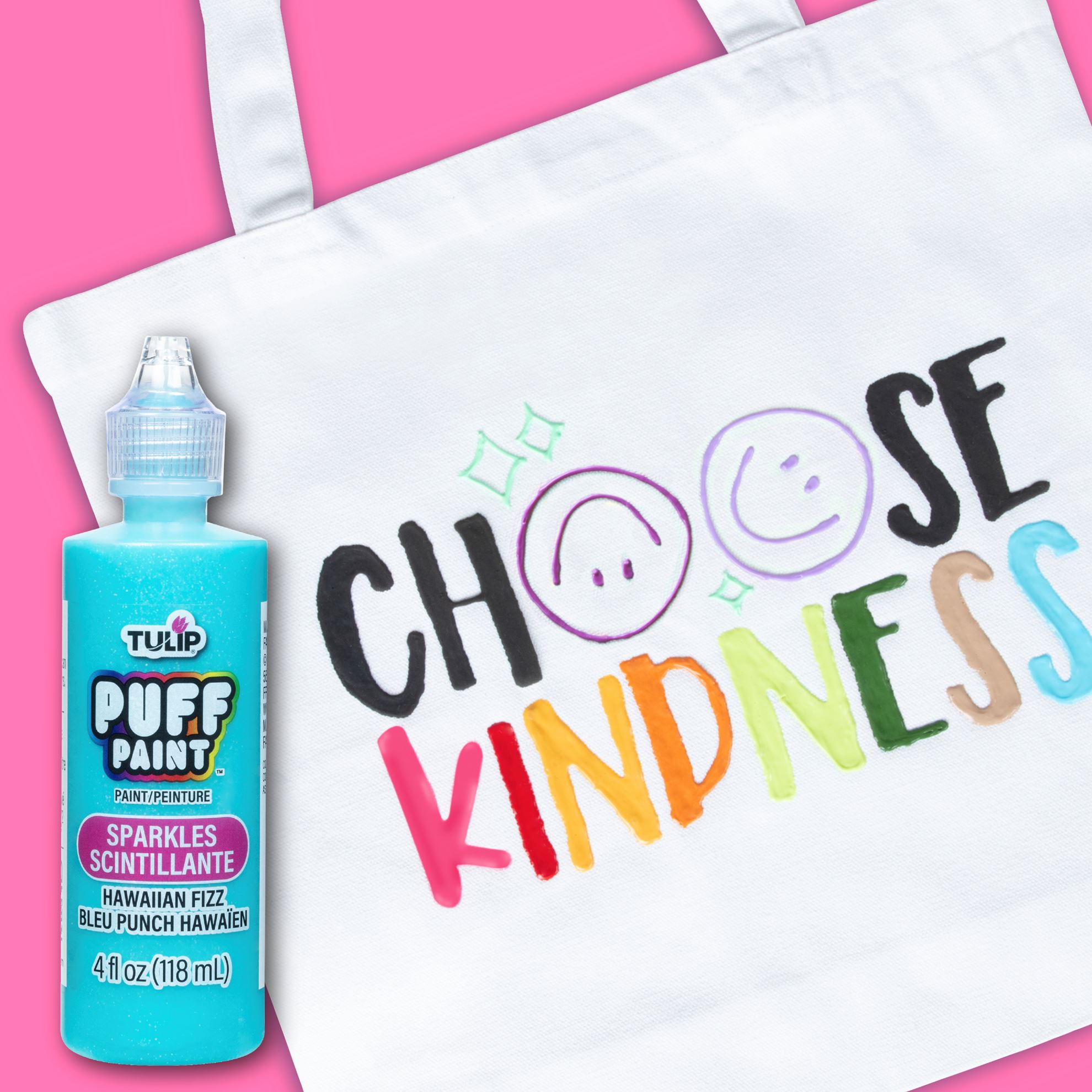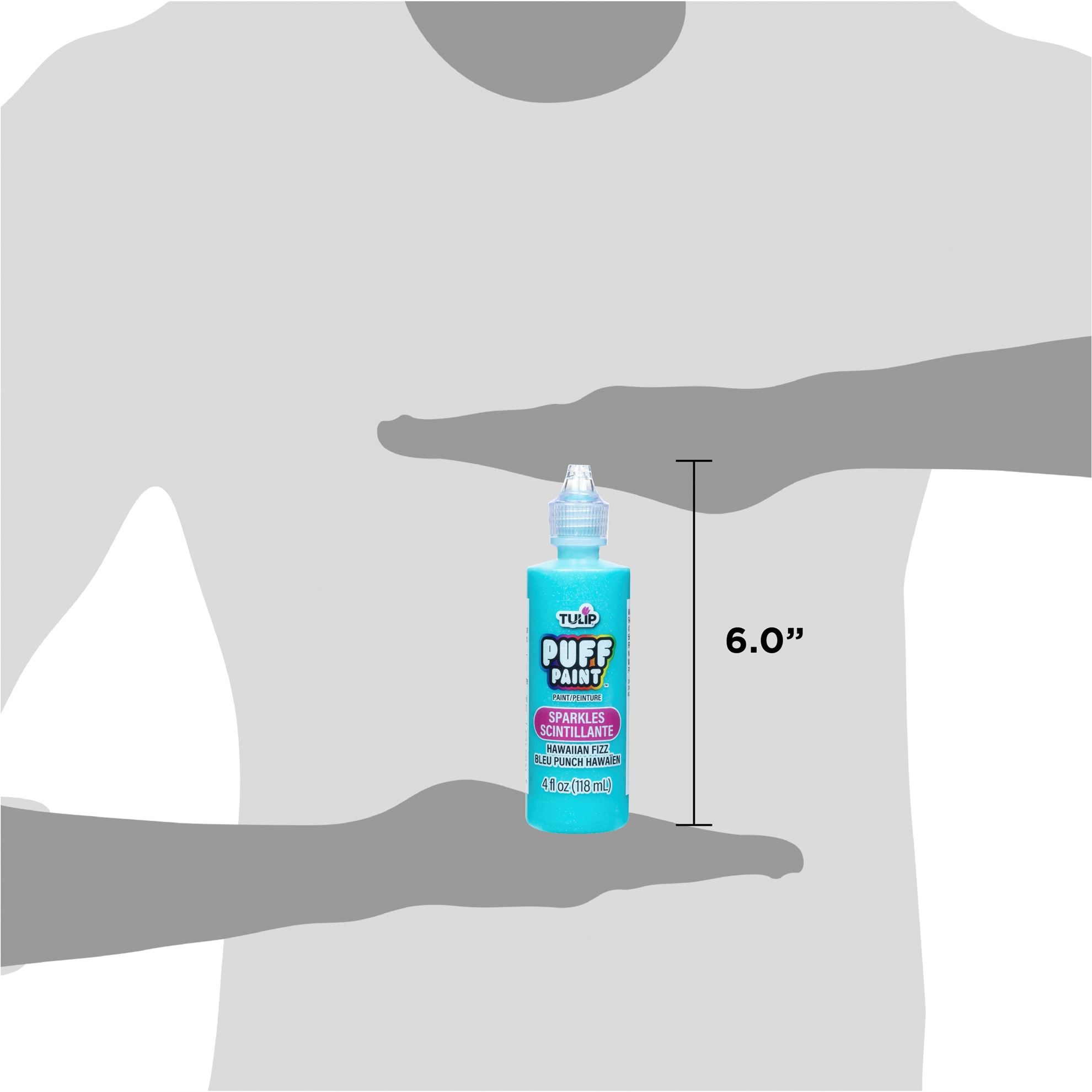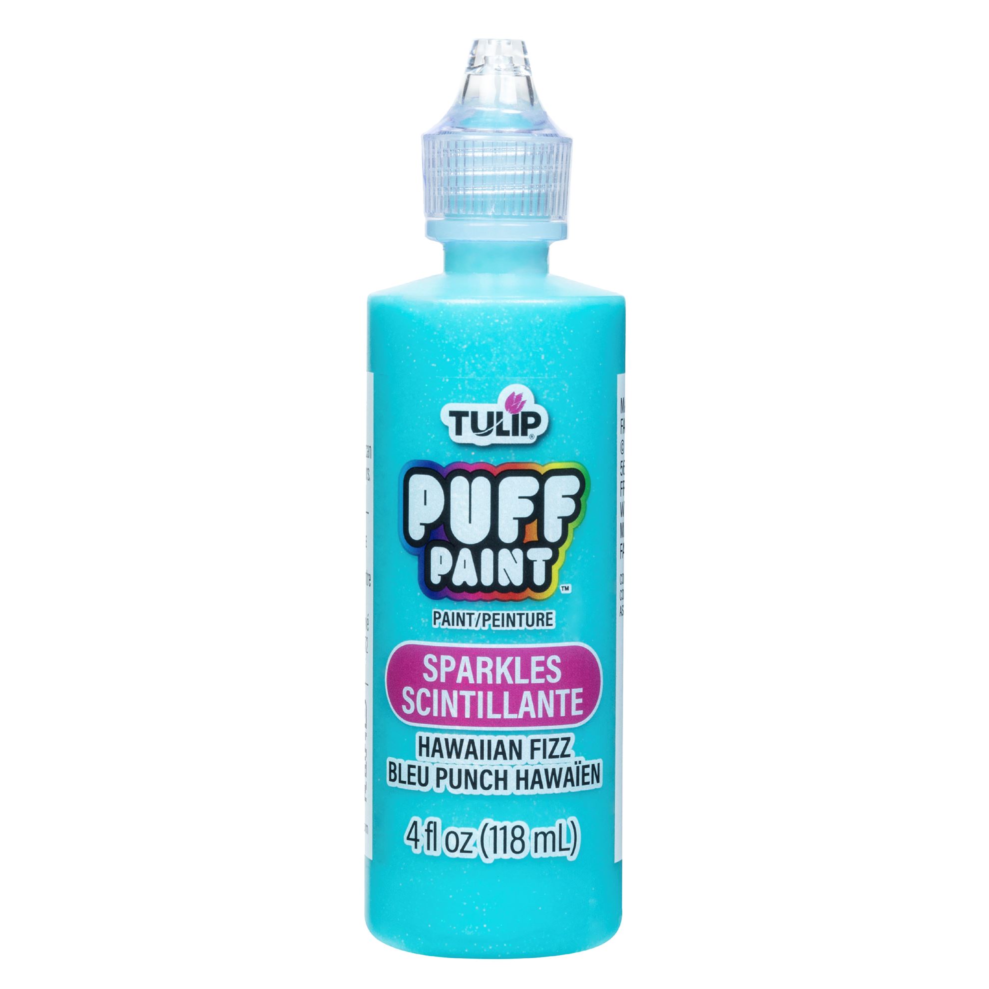 Make your craft and fashion projects stand out with Puff Paint! Tulip Puff Paints dry permanent, flexible and machine washable with sparkling, dimensional texture that stands out on every project. These nontoxic paints are used by crafters of all ages and skill levels on everything from educational crafts to statement T-shirts, canvas art, accessories, gift giving, seasonal décor and so much more!Includes 1 (4 fl. oz) bottle of Sparkles Hawaiian Fizz Puff Paint.