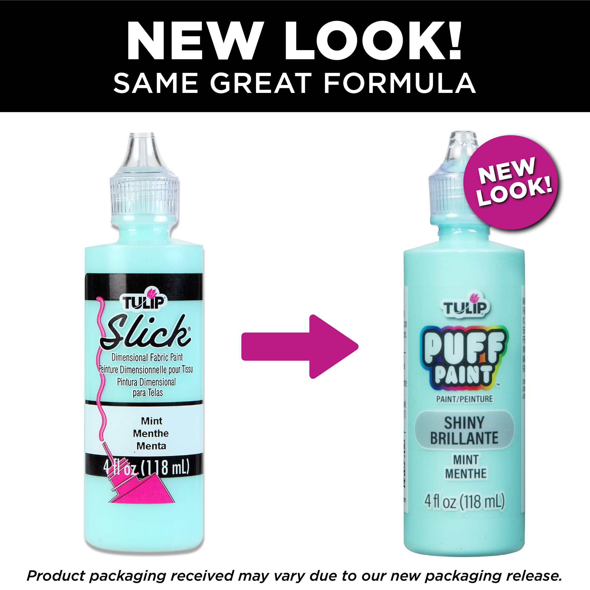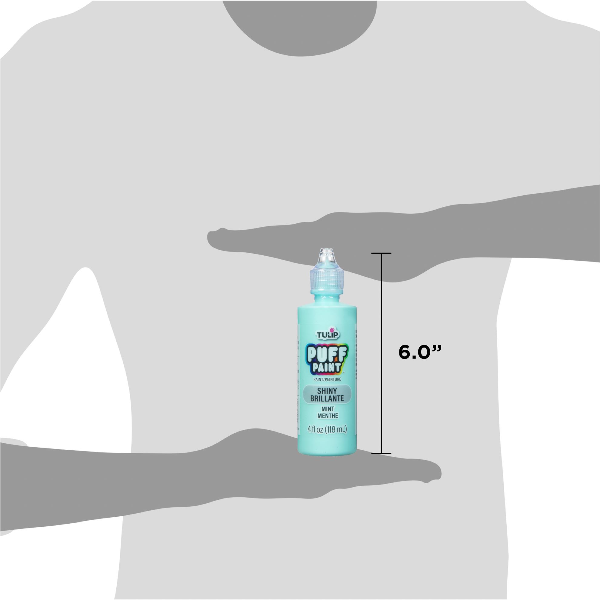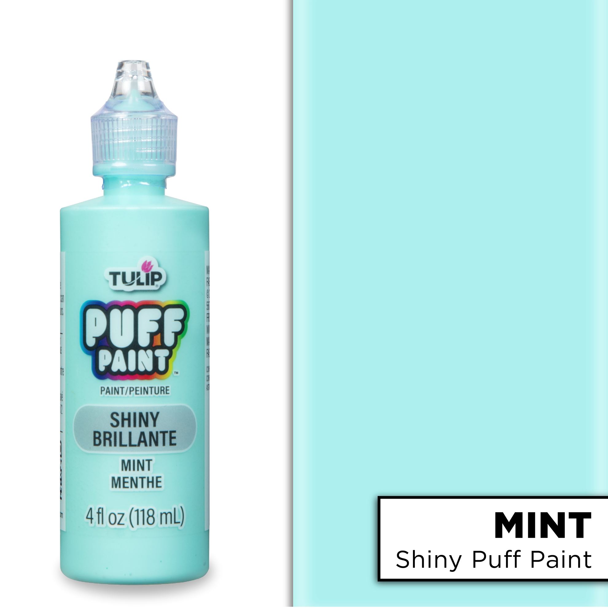 Make your craft and fashion projects stand out with Puff Paint! Tulip Puff Paints dry permanent, flexible and machine washable with shiny, dimensional texture that stands out on every project. These nontoxic paints are used by crafters of all ages and skill levels on everything from educational crafts to statement T-shirts, canvas art, accessories, gift giving, seasonal décor and so much more!Includes 1 (4 fl. oz) bottle of Shiny Mint Puff Paint.