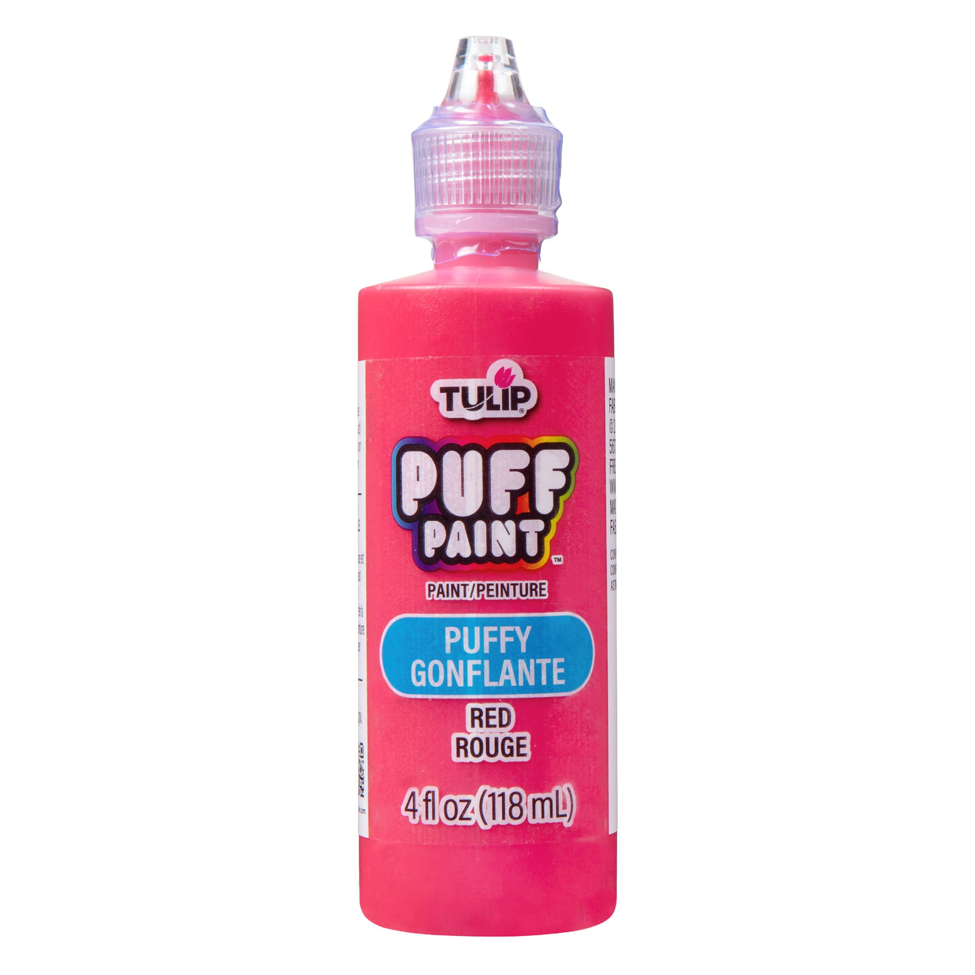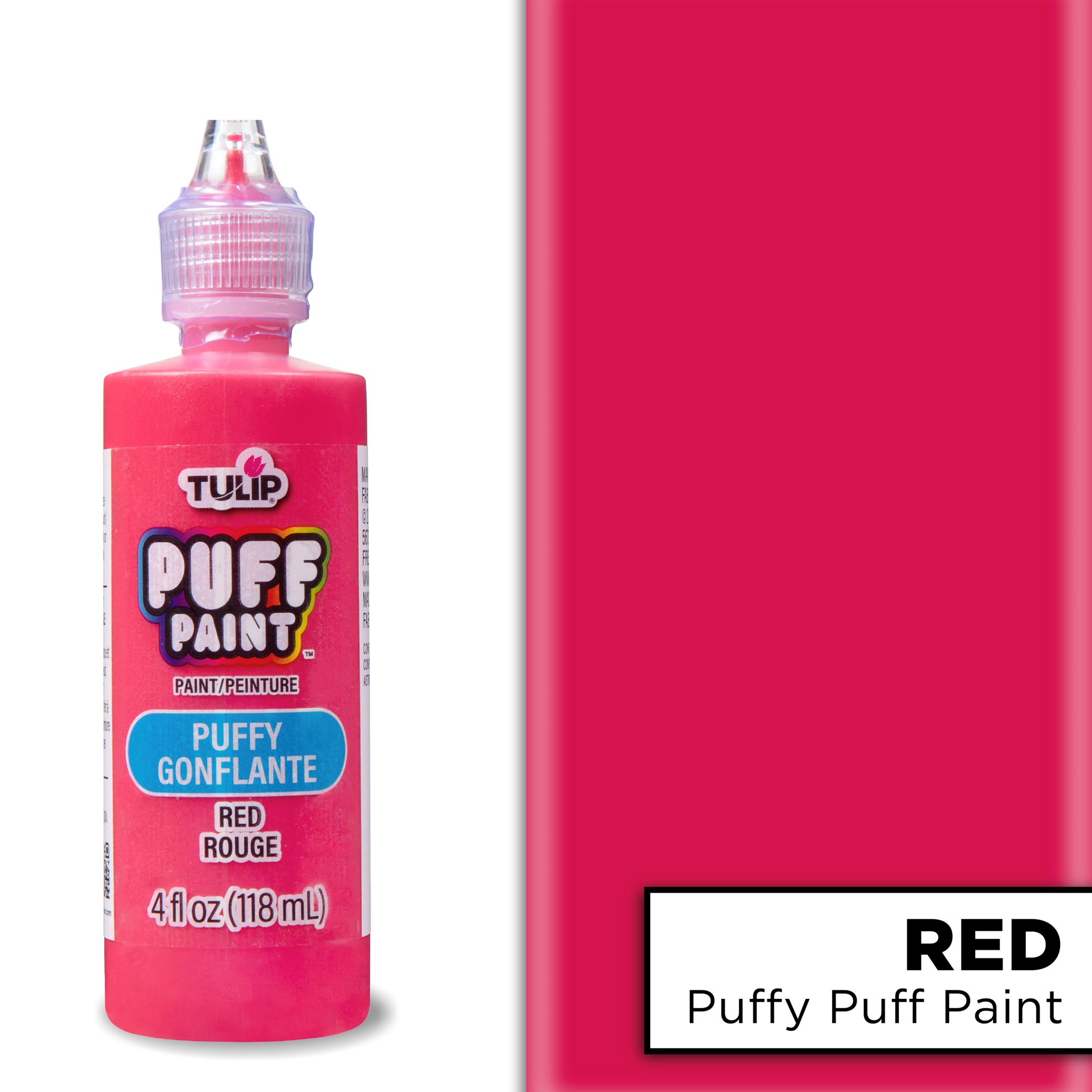 Make your craft and fashion projects stand out with Puff Paint! Tulip Puff Paints dry permanent, flexible and machine washable with fun dimensional texture that stands out on every project. These nontoxic paints are used by crafters of all ages and skill levels on everything from educational crafts to statement T-shirts, canvas art, accessories, gift giving, seasonal décor and so much more!Once the paint has dried, steam to activate the puffy texture!Includes 1 (4 fl. oz) bottle of Puffy Red Puff Paint.