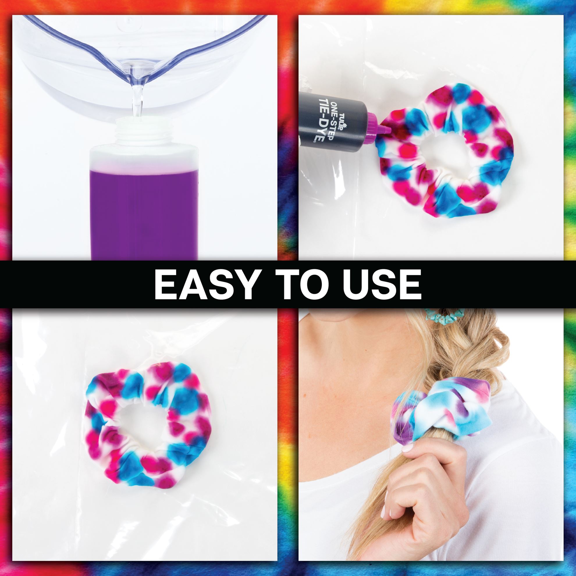These white cotton Tulip® Scrunchies are perfect for customizing with tie dye. Personalize with your favorite Tulip® One-Step Tie-Dye Kits® and other Tulip® Color Products to accessorize your looks in bold, vibrant style. Mix & match with tie-dye clothing, loungewear and more for DIY looks in the hottest trend around. Pack includes four 100% cotton, ready-to-tie-dye scrunchies. Make one to match every outfit!