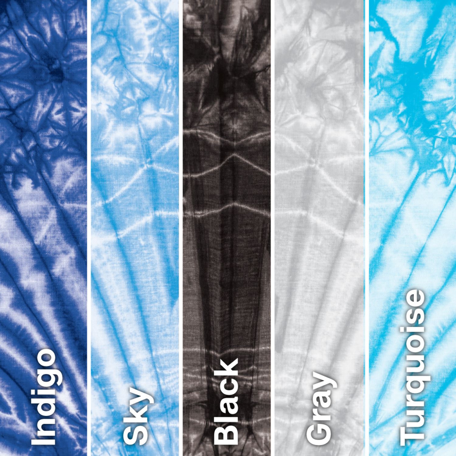 The Tulip Shibori 5-Color Tie-Dye Kit includes 5 (4 fl. oz.) One-Step Dyes in cool Shibori shades (Sky Blue, Black, Gray, Indigo and Turquoise) plus dye refill packets, 4 gloves, 40 rubber bands, 15 zip ties, 6 yards of twine, and project guide. Dyes up to 30 projects. (Note: project count will vary based on size of garment and amount of dye used.) All Tulip One-Step Dyes are nontoxic and safe for crafters of any age or experience level. One-Step Dyes are formulated to be their best and brightest on natural-fiber fabrics. Dyes are safe to machine wash – colors stay bold through repeated washings.