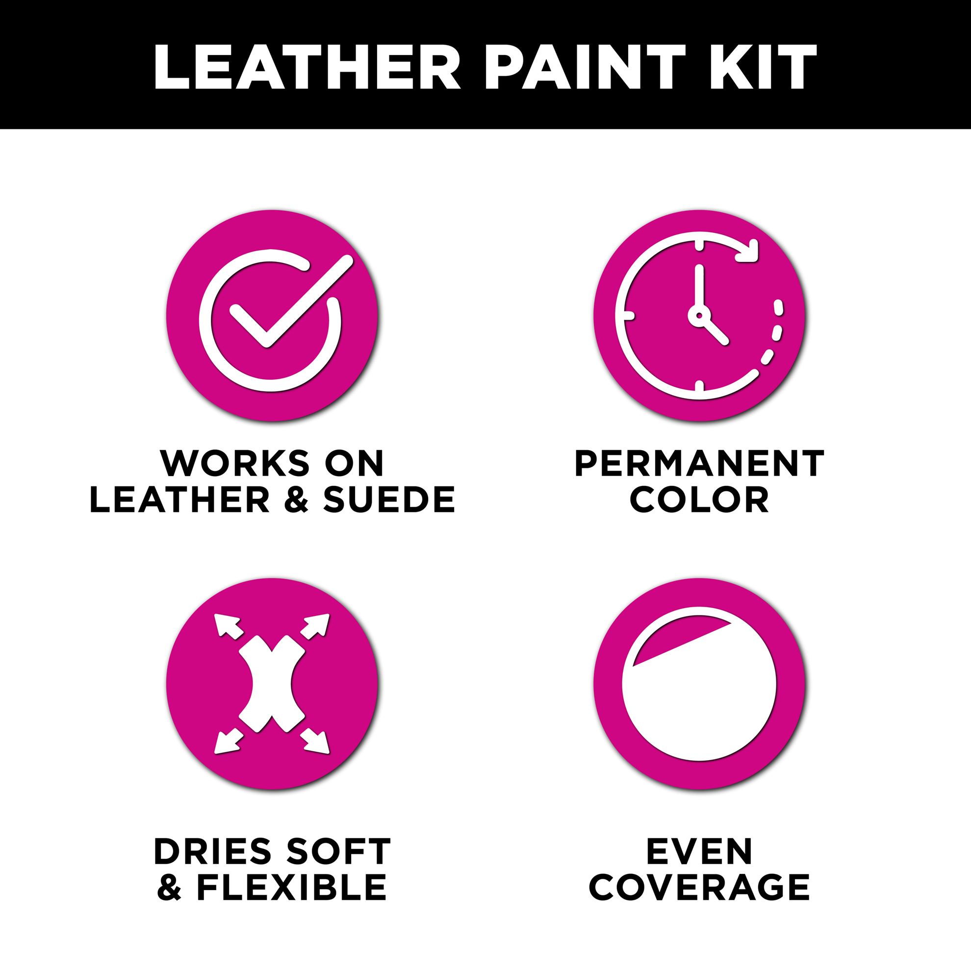 - Includes 3 (2 fl. oz.) Leather Paints and 1 (2 fl. oz.) gloss topcoat