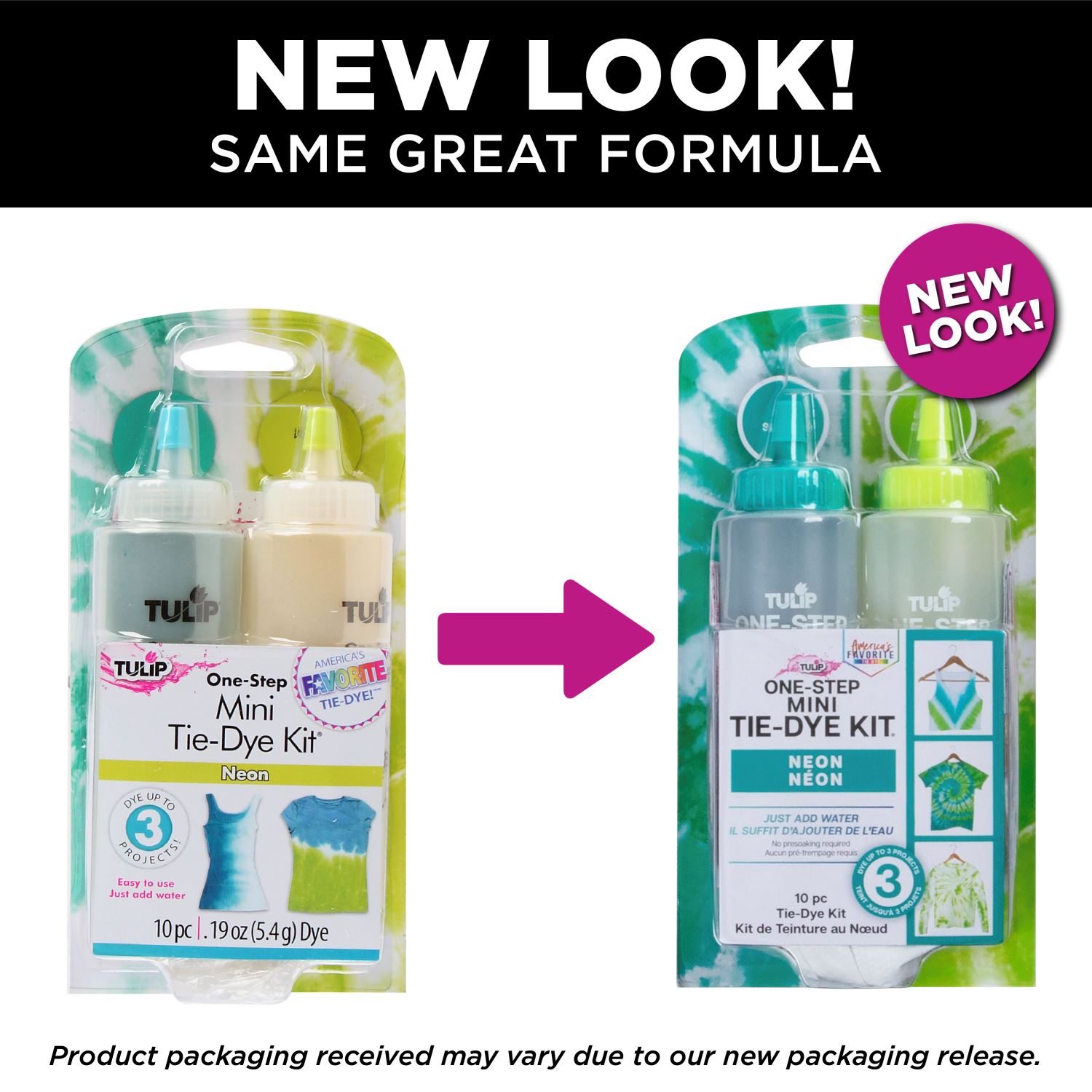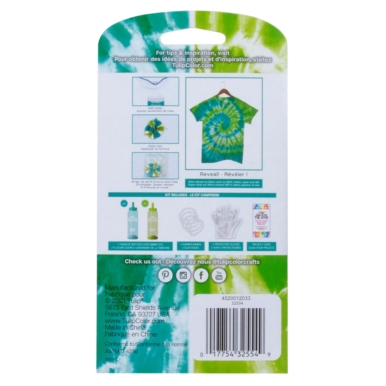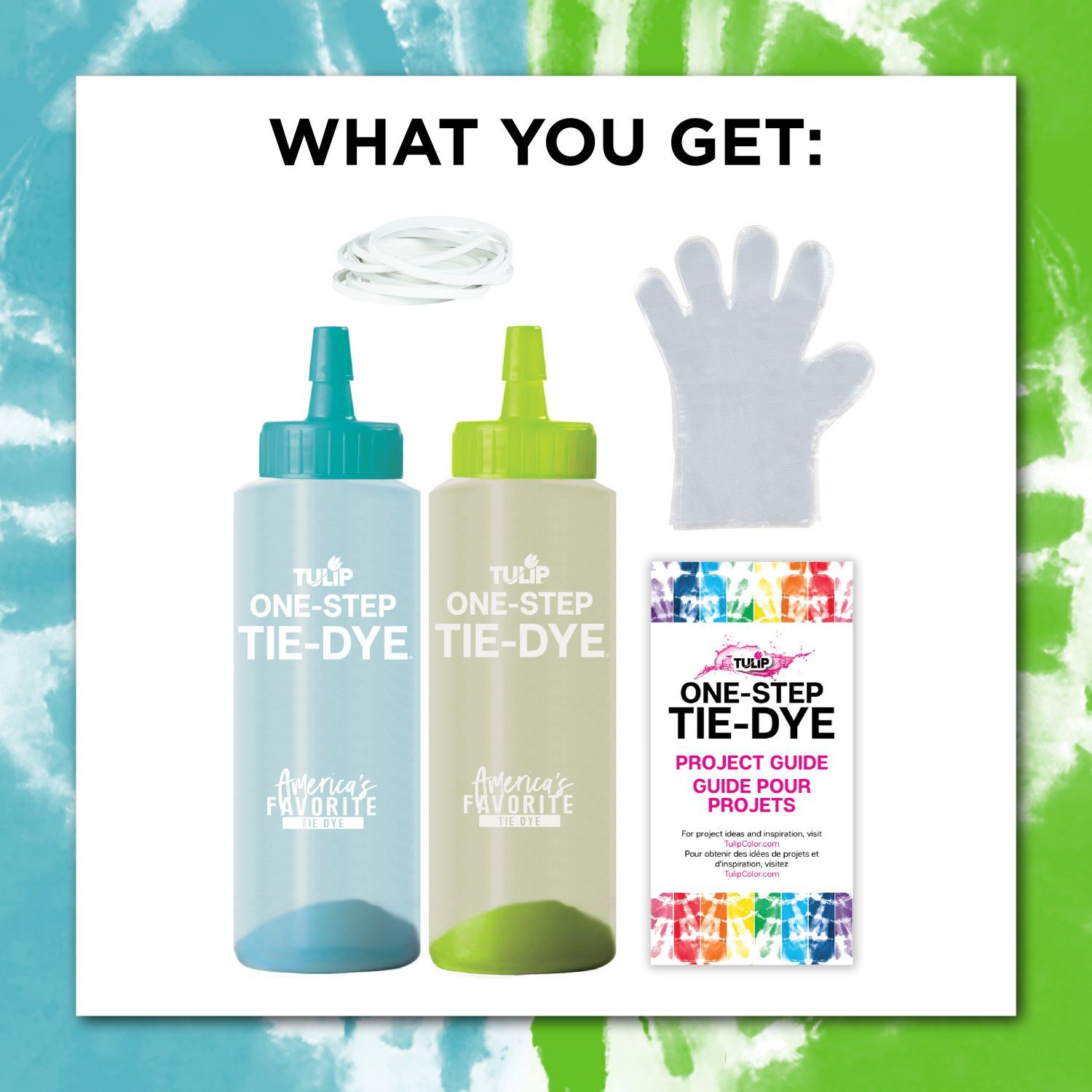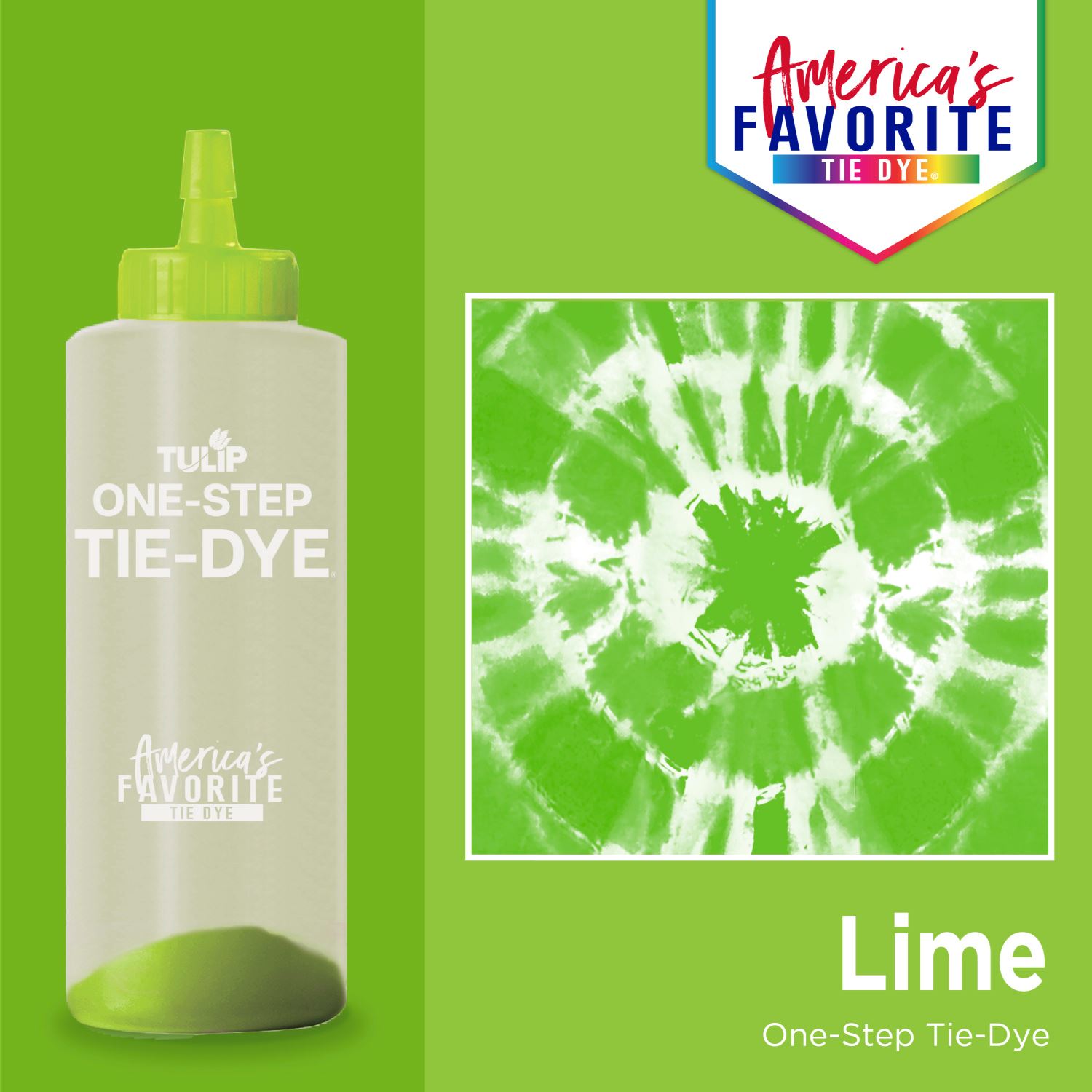 Tulip® One-Step Tie Dye's easy-to-use, one-step process eliminates the need to presoak fabrics in soda ash - just add water to the dye bottles, shake and apply. Tie dye has never been so fun and easy! Great for group activities and tons of family fun, you'll love the incredibly vibrant colors that stay bold and beautiful wash after wash! Innovation, premium quality and ease of use make Tulip One-Step Tie Dye "America's Favorite Tie Dye"!
