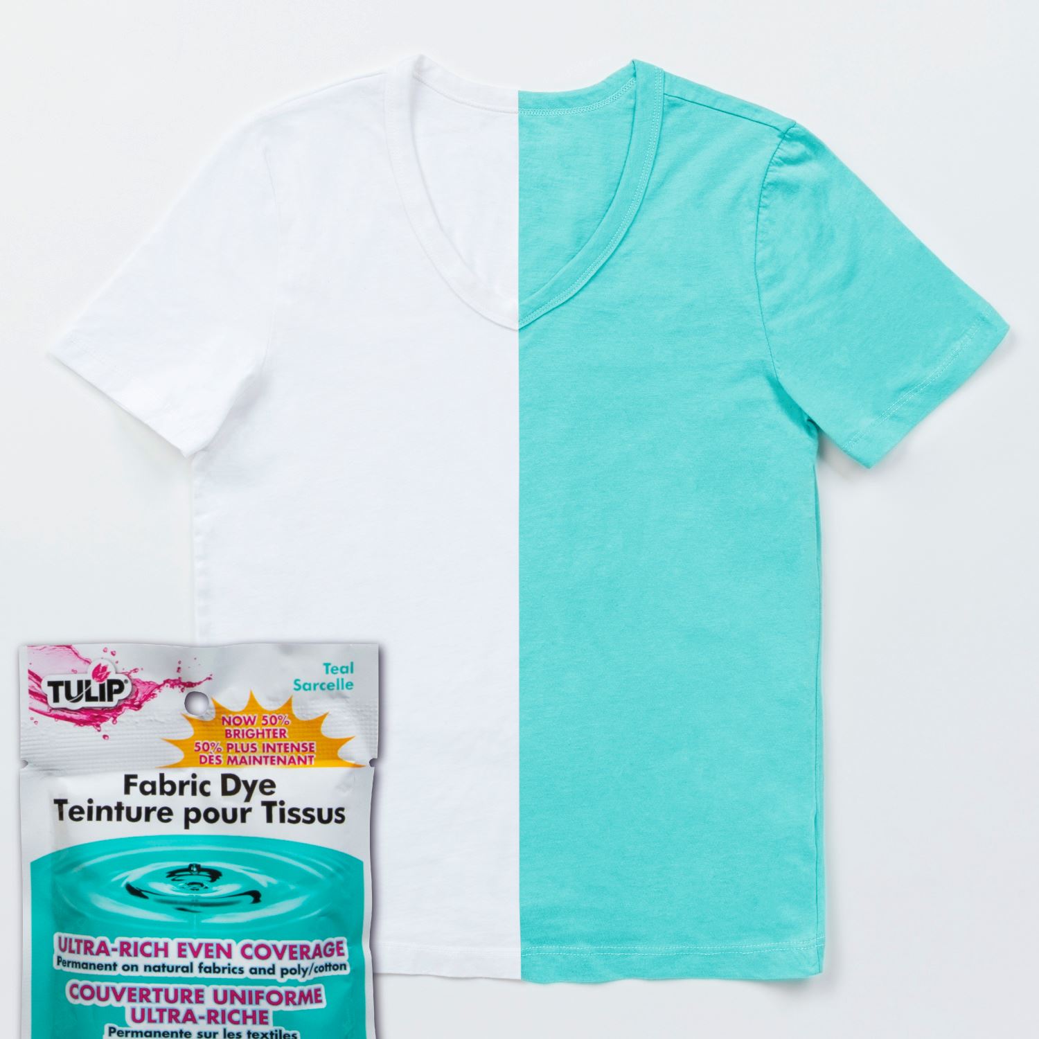 Tulip Fabric Dye is your solution for one-color dyeing, re-dyeing and dip dyeing. This formula utilizes the classic hot water dye method for ultra-rich, even dye coverage and is most vibrant on natural fabrics such as 100% cotton, rayon, linen, and silk. Tulip Fabric Dyes are mixable so you can customize every project with beautiful, permanent color. Contains 1.76 oz of Teal Fabric Dye; one packet makes 1 gallon of dye, which can be used to dye up to ½ pound of fabric. (Note: This is an estimate and actual amount of dye per project and dye vibrancy depends on the user, the size of the fabric, and the fabric itself.)