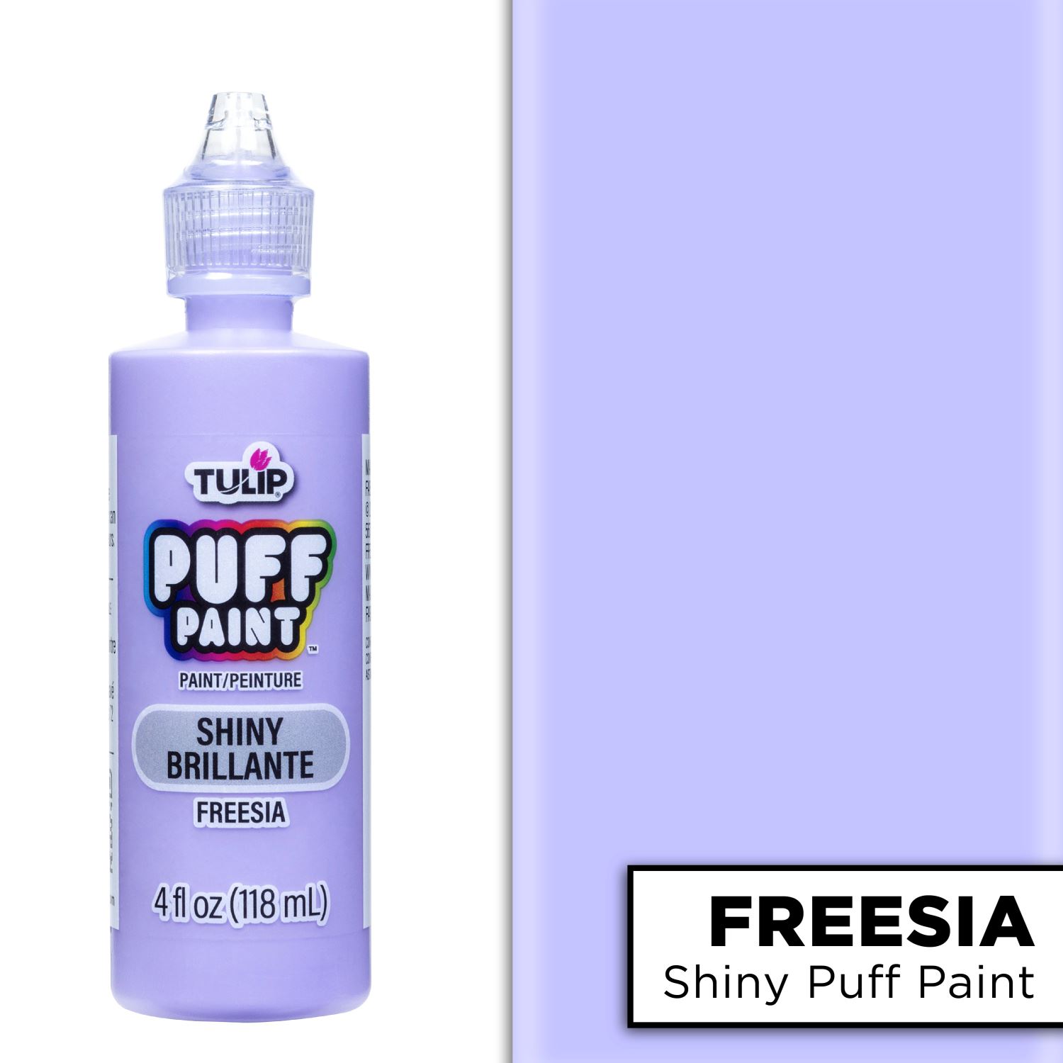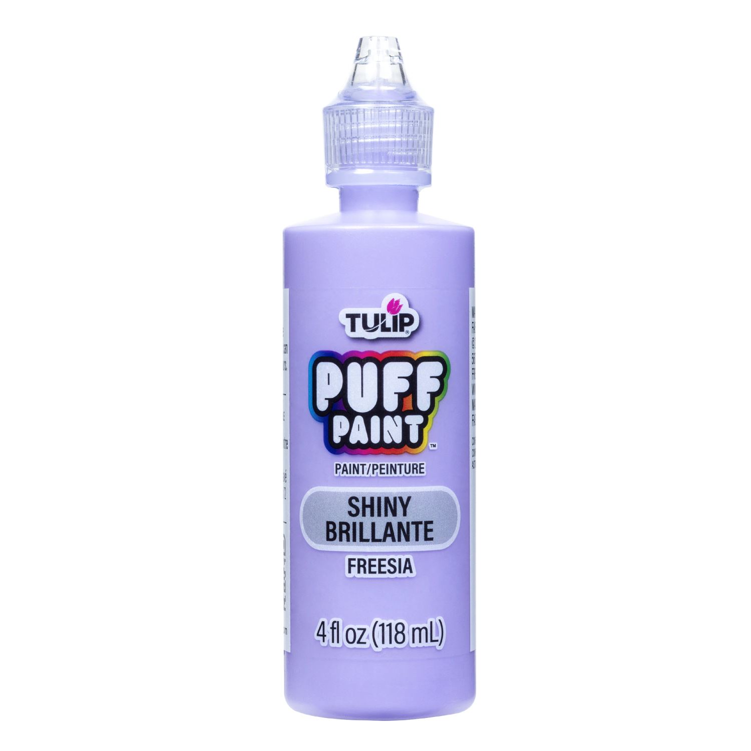 Make your craft and fashion projects stand out with Puff Paint! Tulip Puff Paints dry permanent, flexible and machine washable with shiny, dimensional texture that stands out on every project. These nontoxic paints are used by crafters of all ages and skill levels on everything from educational crafts to statement T-shirts, canvas art, accessories, gift giving, seasonal décor and so much more!Includes 1 (4 fl. oz) bottle of Shiny Freesia Puff Paint.