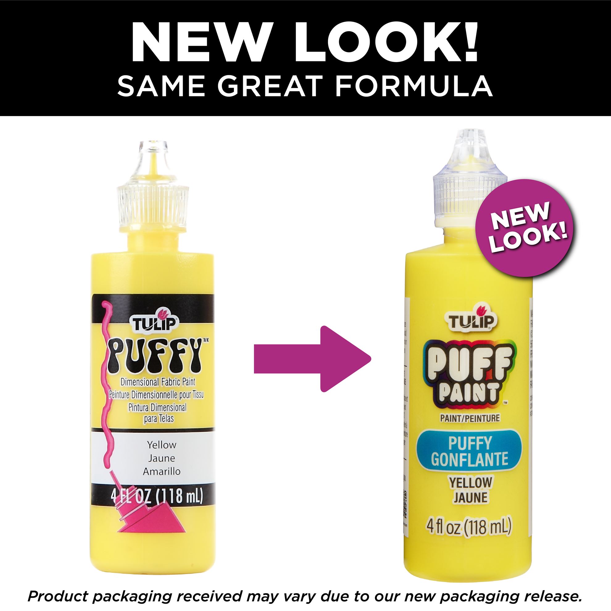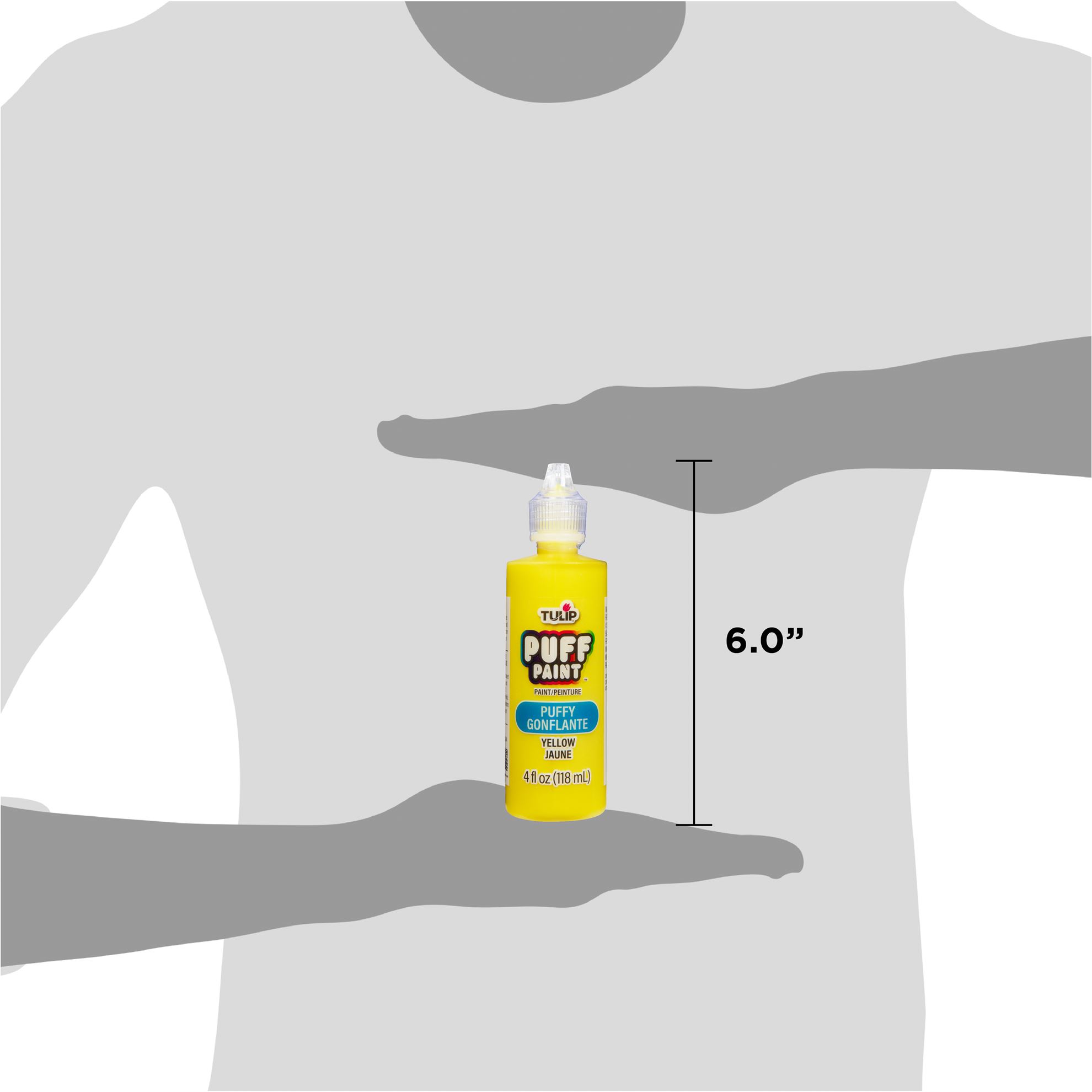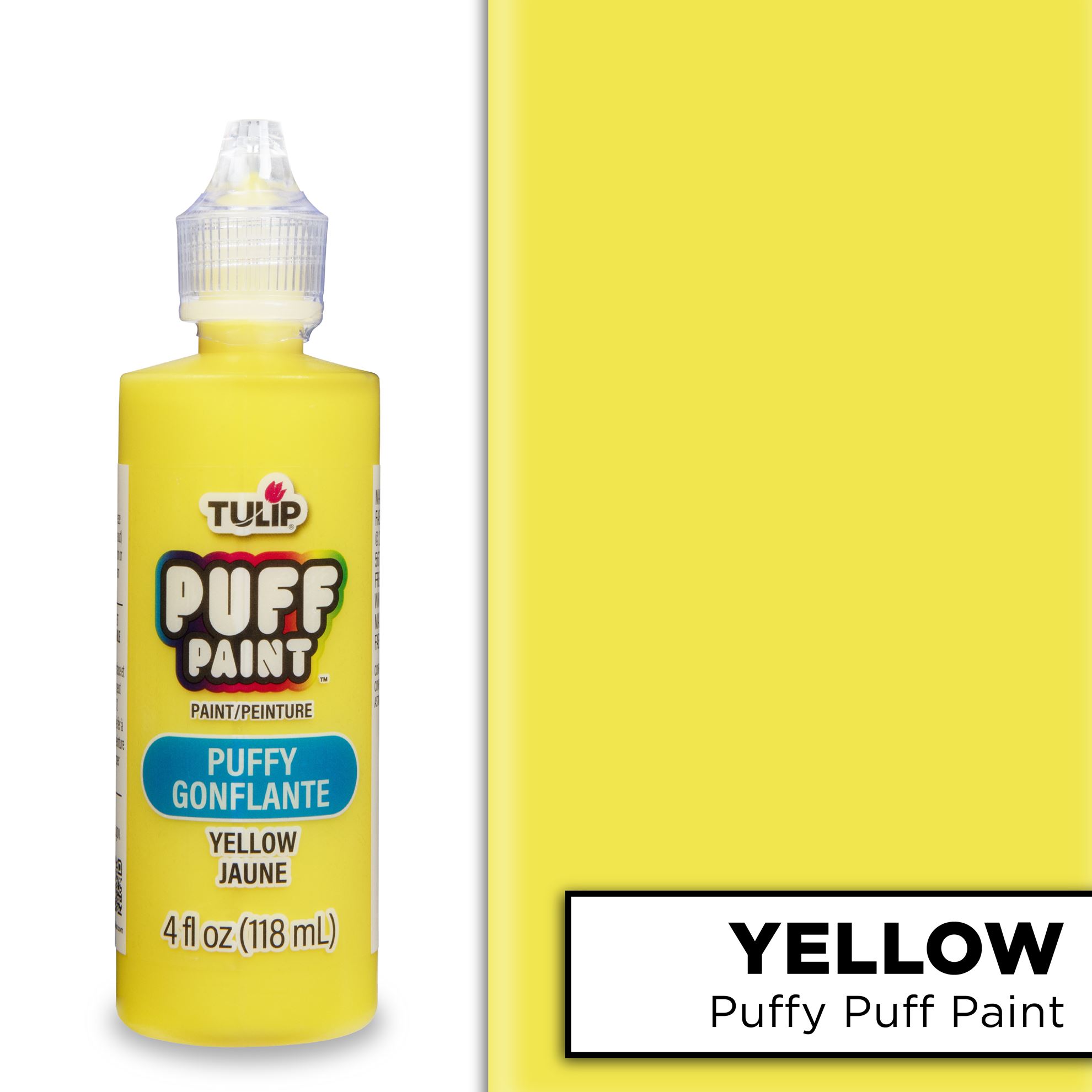 Make your craft and fashion projects stand out with Puff Paint! Tulip Puff Paints dry permanent, flexible and machine washable with fun dimensional texture that stands out on every project. These nontoxic paints are used by crafters of all ages and skill levels on everything from educational crafts to statement T-shirts, canvas art, accessories, gift giving, seasonal décor and so much more!Once the paint has dried, steam to activate the puffy texture!Includes 1 (4 fl. oz.) bottle of Puffy Yellow Puff Paint.
